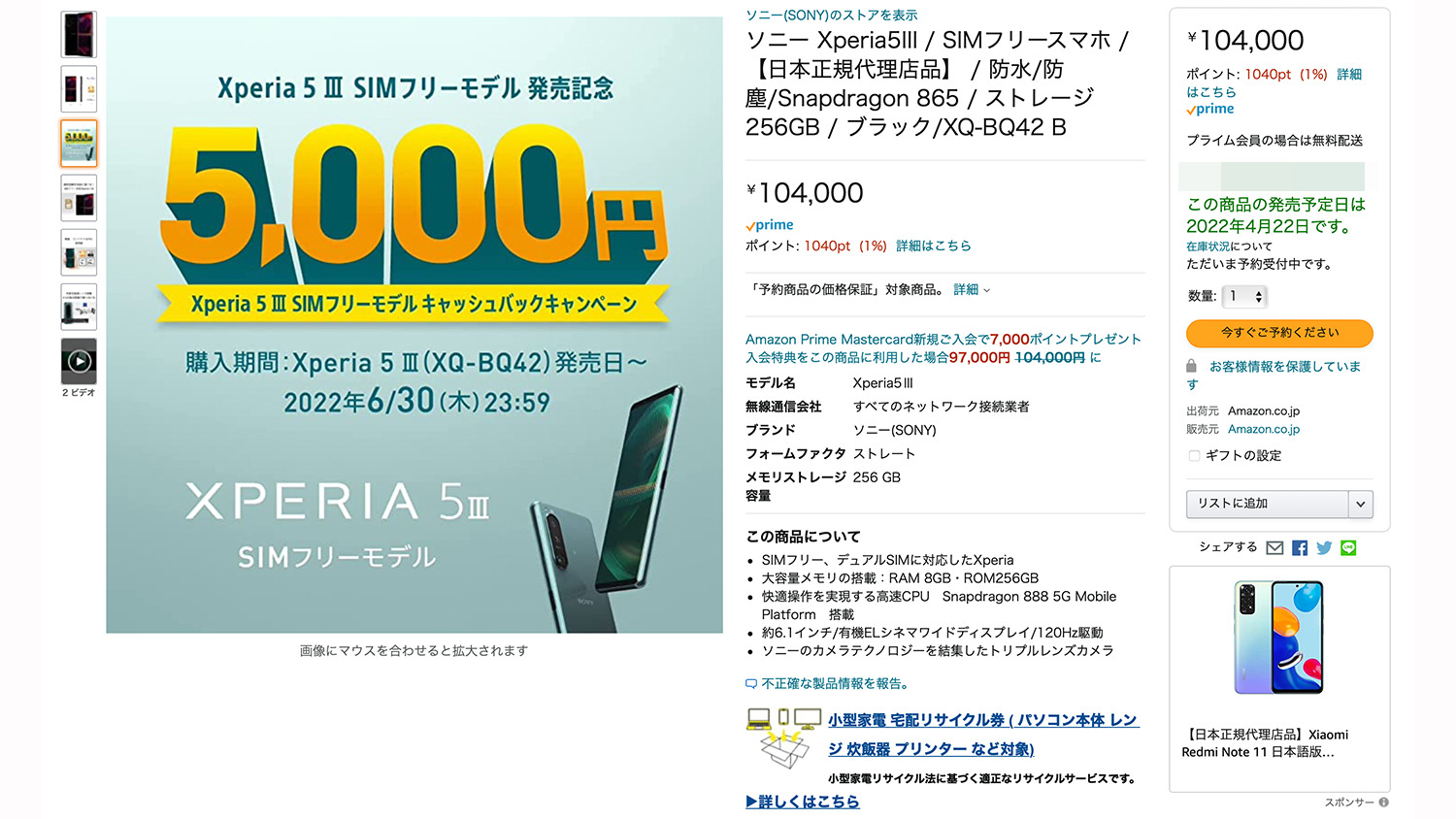 詳細は「売行き上々?Xperia PRO-I。Amazonで早くも完売」をご参照下さい。さて今回AmazonにおけるXperia 5Ⅲの直販モデルの価格が安いので簡単にまとめたいと思います。