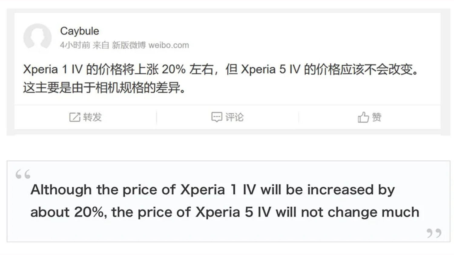 今回Redditにおいて投稿されていた画像が上記の画像になります。weiboにたまにXperia関連の情報を投稿しているCaybule氏の投稿をスクショしたものだと思われます。ちなみに同氏は投稿をすぐ消すことが多く、この投稿も実際に確認できず。