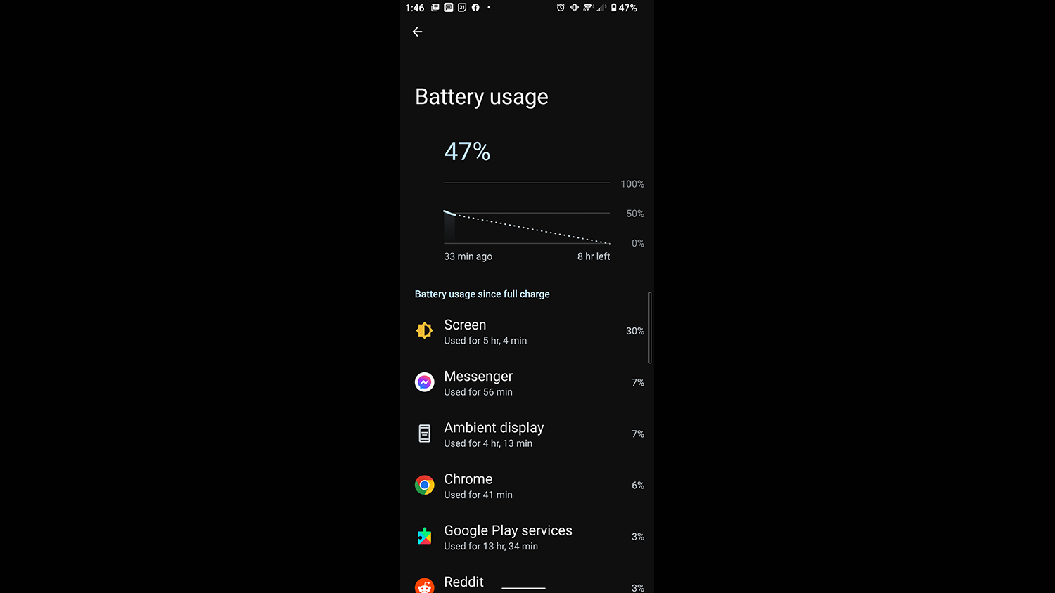 ここまで制限して30%しか電池残量がないと思う人もいれば十分だと思う人も。自分の使い方だと5Gオンに120Hz表示でスクリーンタイムが6時間から8時間の間で電池残量が20~40%という感じです。