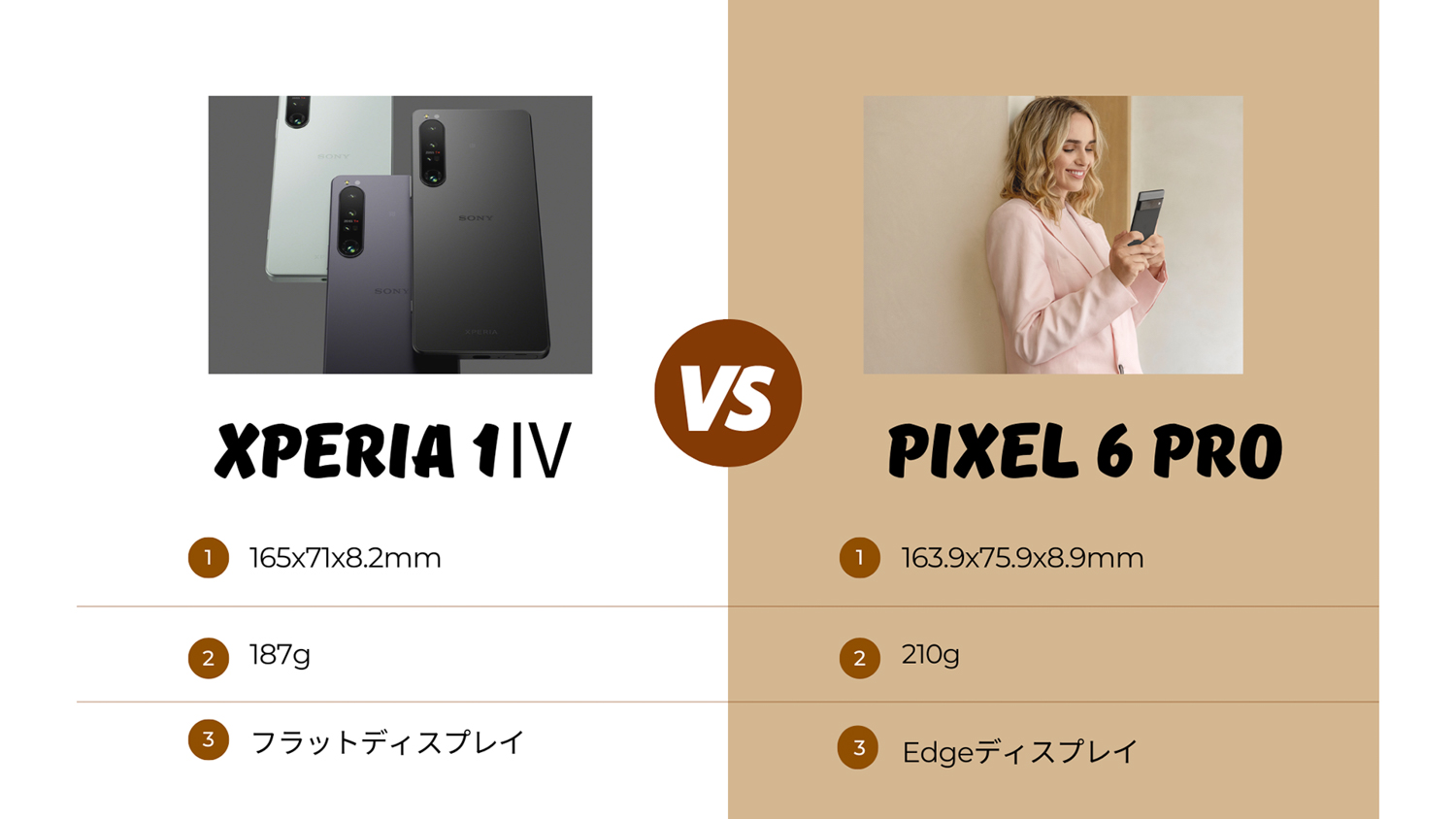そして3つ目としてディスプレイのスペックですがPixel 6 Proは他のハイエンドモデルと比較しても遜色ないディスプレイスペックに対応していますがXperia 1Ⅳは4Kに対応していることもあり特に黒の表現力に大きな違いがあり臨場感に違い。
