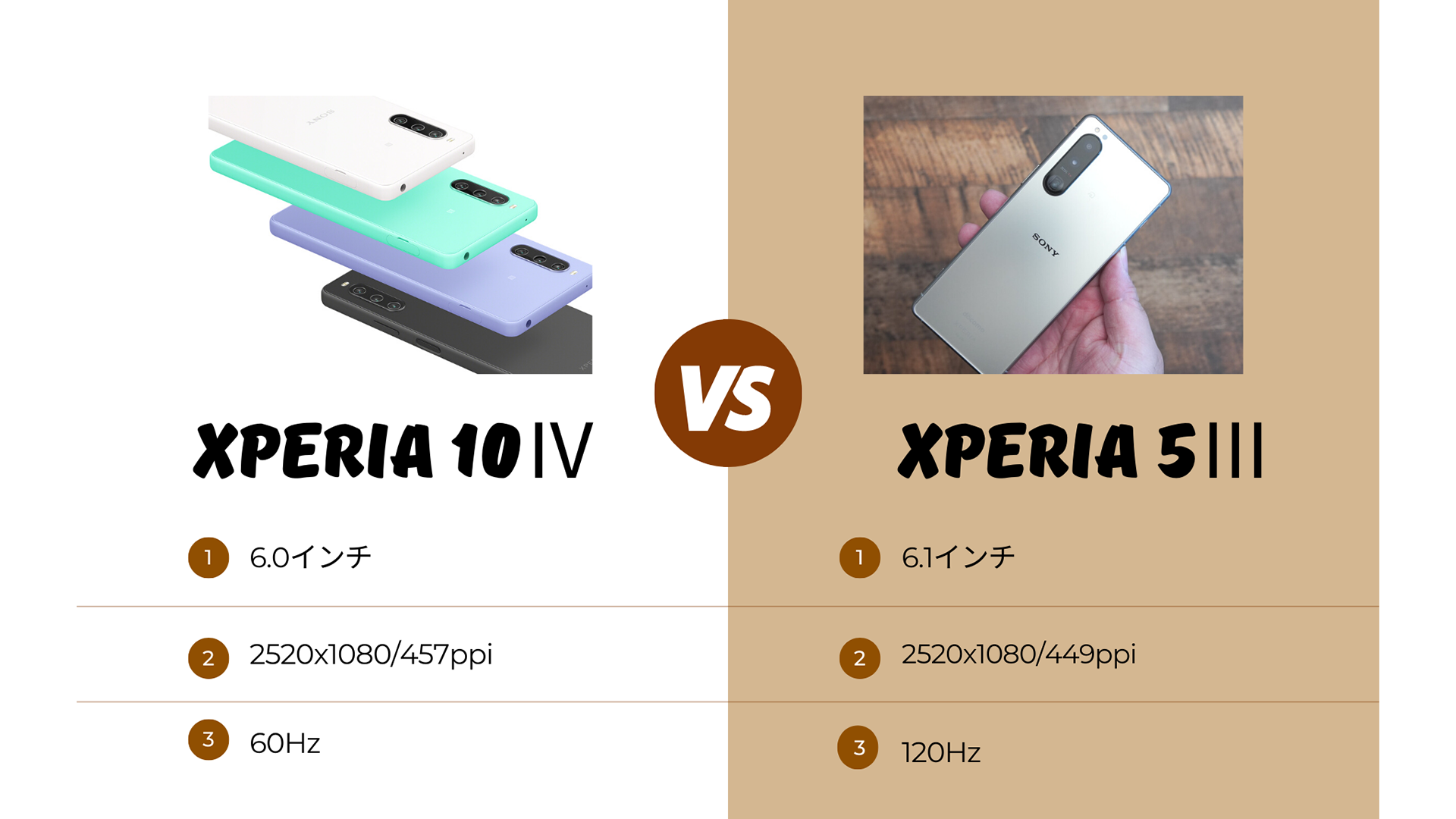 Xperia 5ⅢとXperia 10Ⅳでは異なる見やすさのディスプレイを搭載しているという感じです。