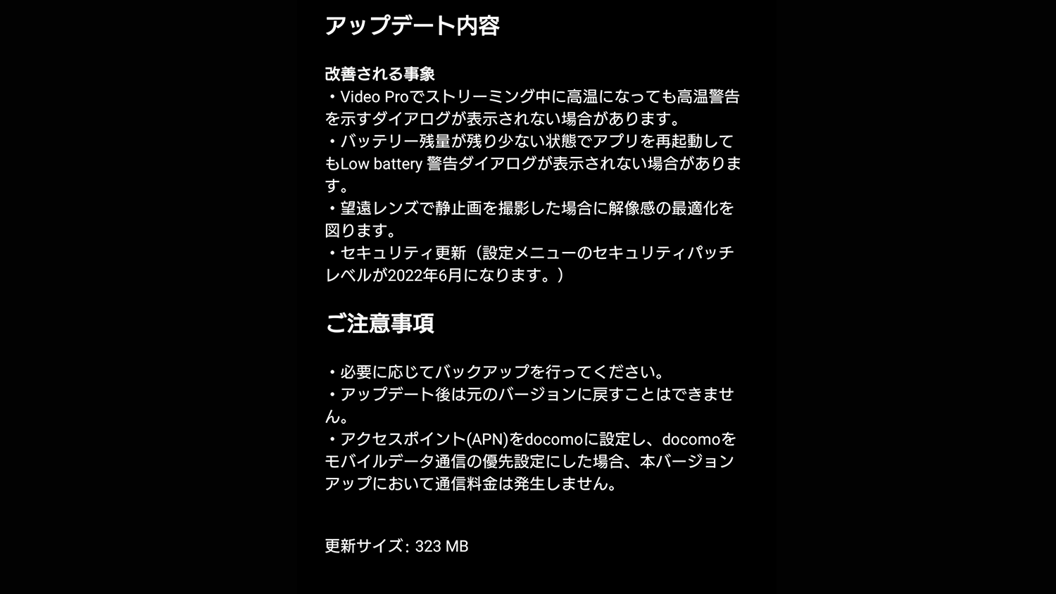 6月28日にはau版に対して最新のアップデートが配信開始されており今回docomo版に関しても6月29日に配信が開始したことが判明しました。やはり注目すべきは望遠レンズの画質改善。