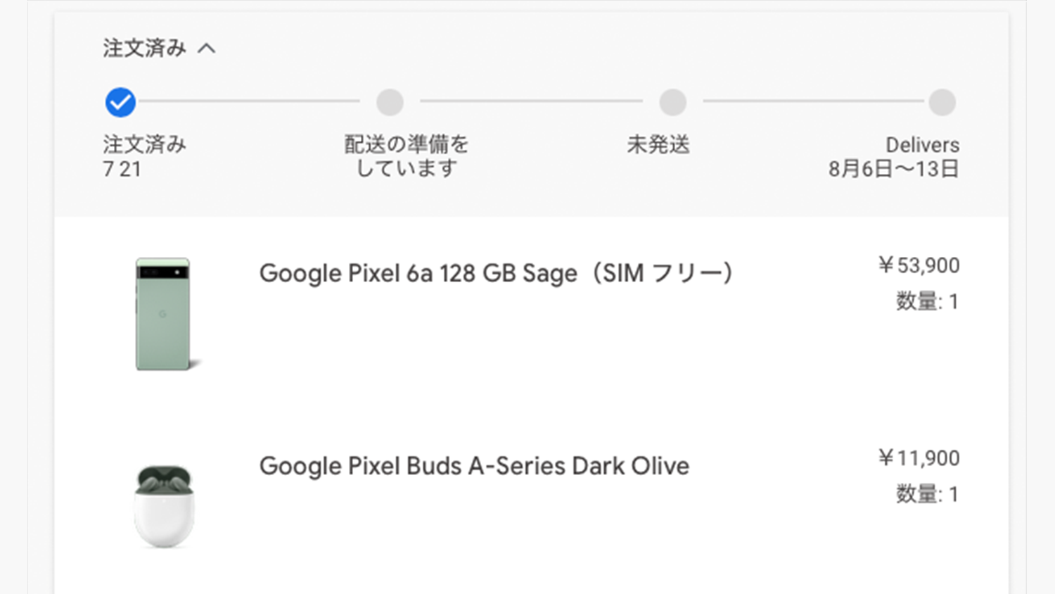 またPixel Buds A seriesの在庫状況に引っ張られるのか納期が上記の画像のように遅めになります。ちなみにPixel 6a単品でカートで入れた場合、執筆時点で確認した限りでは発売日に届く感じです。