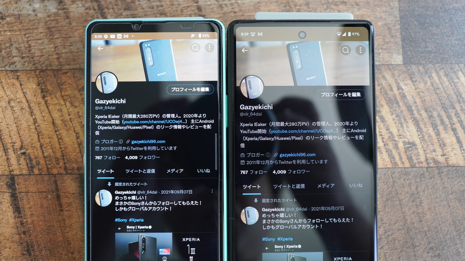 HDR表示の場合Pixel 6aはおそらく800nits程度で表示される可能性がありXperia 10Ⅳは680nits程度で暗いですがただ屋内でTwitterを開くなど日常的な動作においてディスプレイ輝度がどちらも自動調節の場合明らかにXperia 10Ⅳの方が明るい。