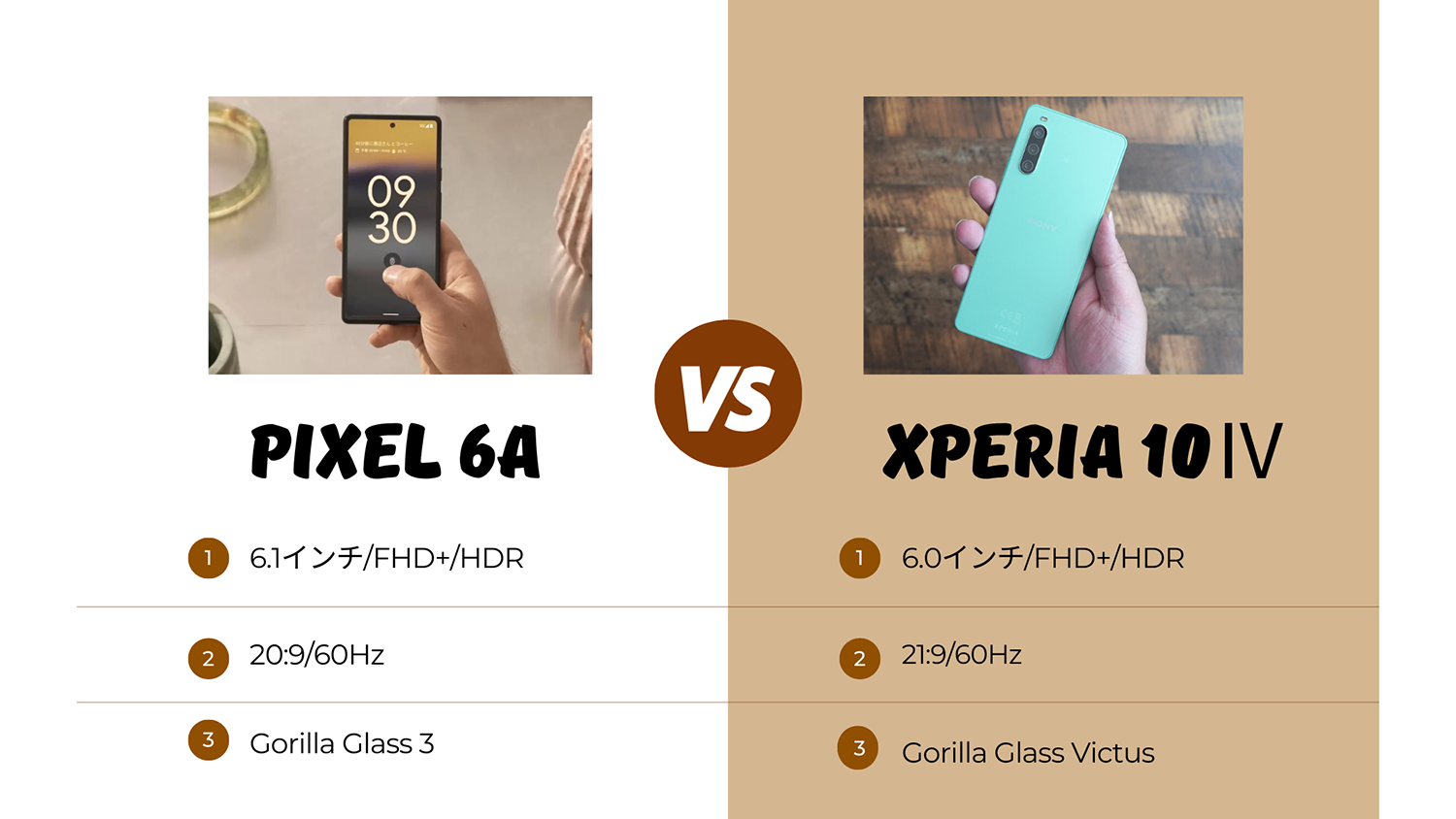 どちらの機種もコンテンツによっては出るので単純にどちらが見やすいかで判断するべきだと思います。そしてディスプレイ輝度に関してPixel 6aがまだ明らかになっていませんがおそらく標準は500nitsでXperia 10Ⅳは600nits程度。