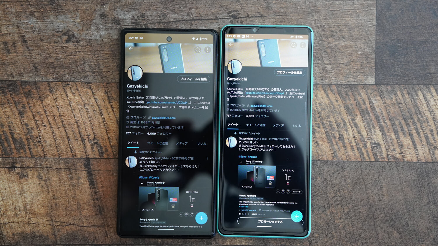HDR表示の場合Pixel 6aはおそらく800nits程度で表示される可能性がありXperia 10Ⅳは680nits程度で暗いですがただ屋内でTwitterを開くなど日常的な動作においてディスプレイ輝度がどちらも自動調節の場合明らかにXperia 10Ⅳの方が明るい。