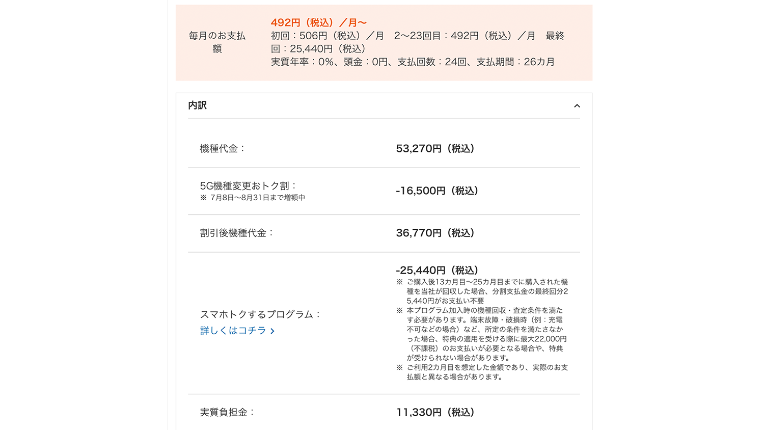 - 「5G機種変更おトク割」「スマホトクするプログラム」をご利用の場合