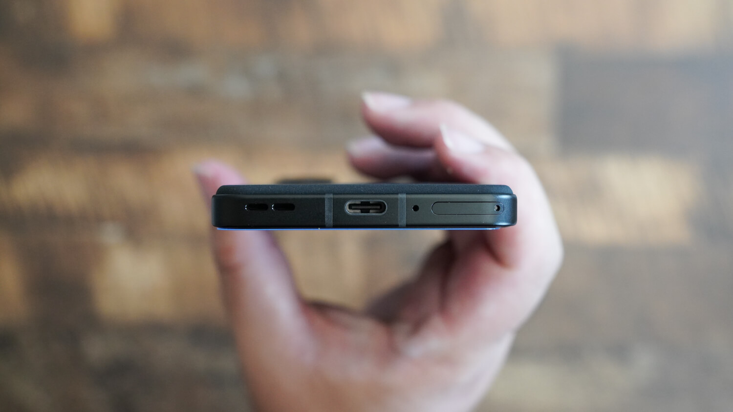 本体下部はUSB-CポートにSIMトレイという感じです。