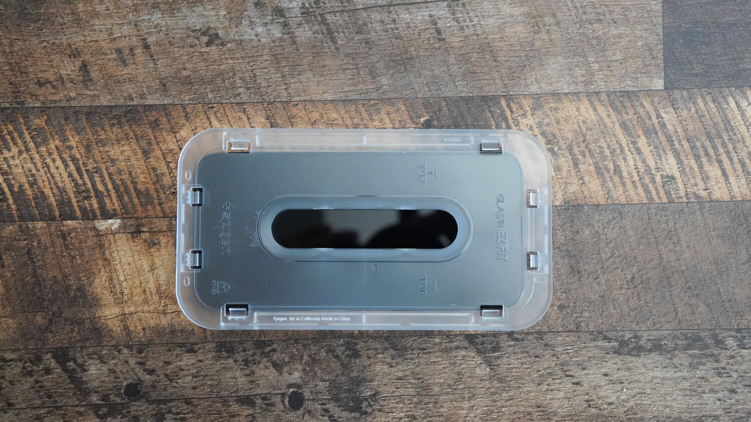 そして今回本体の購入に合わせてまずSpigenのガラスフィルムを購入しました。貼り付け用のガイド枠がついており貼るのはめちゃくちゃ楽で不器用な人にありがたい。