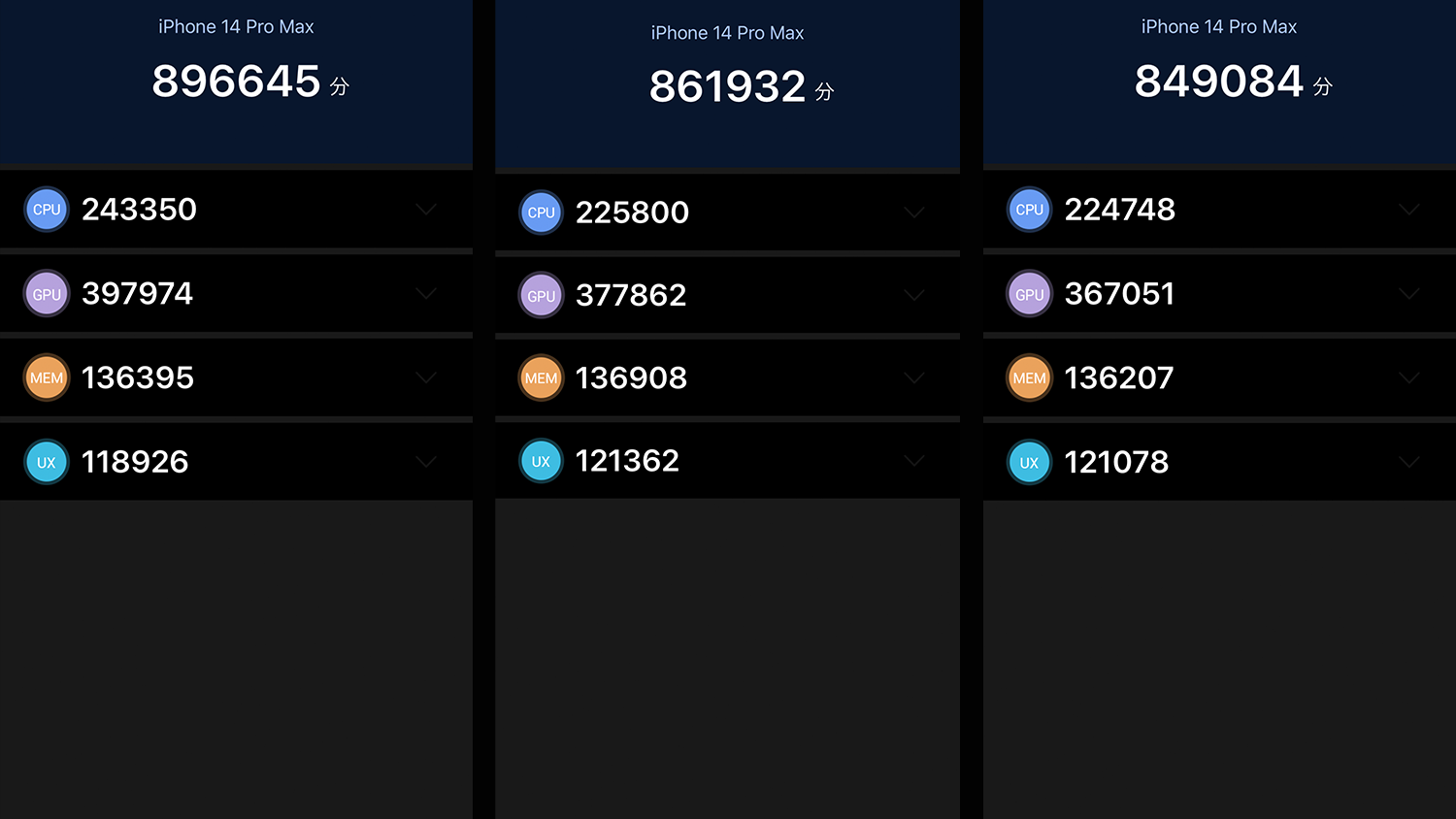 上記の画像はiPhone 14 Pro Maxを3回連続で回してみました。