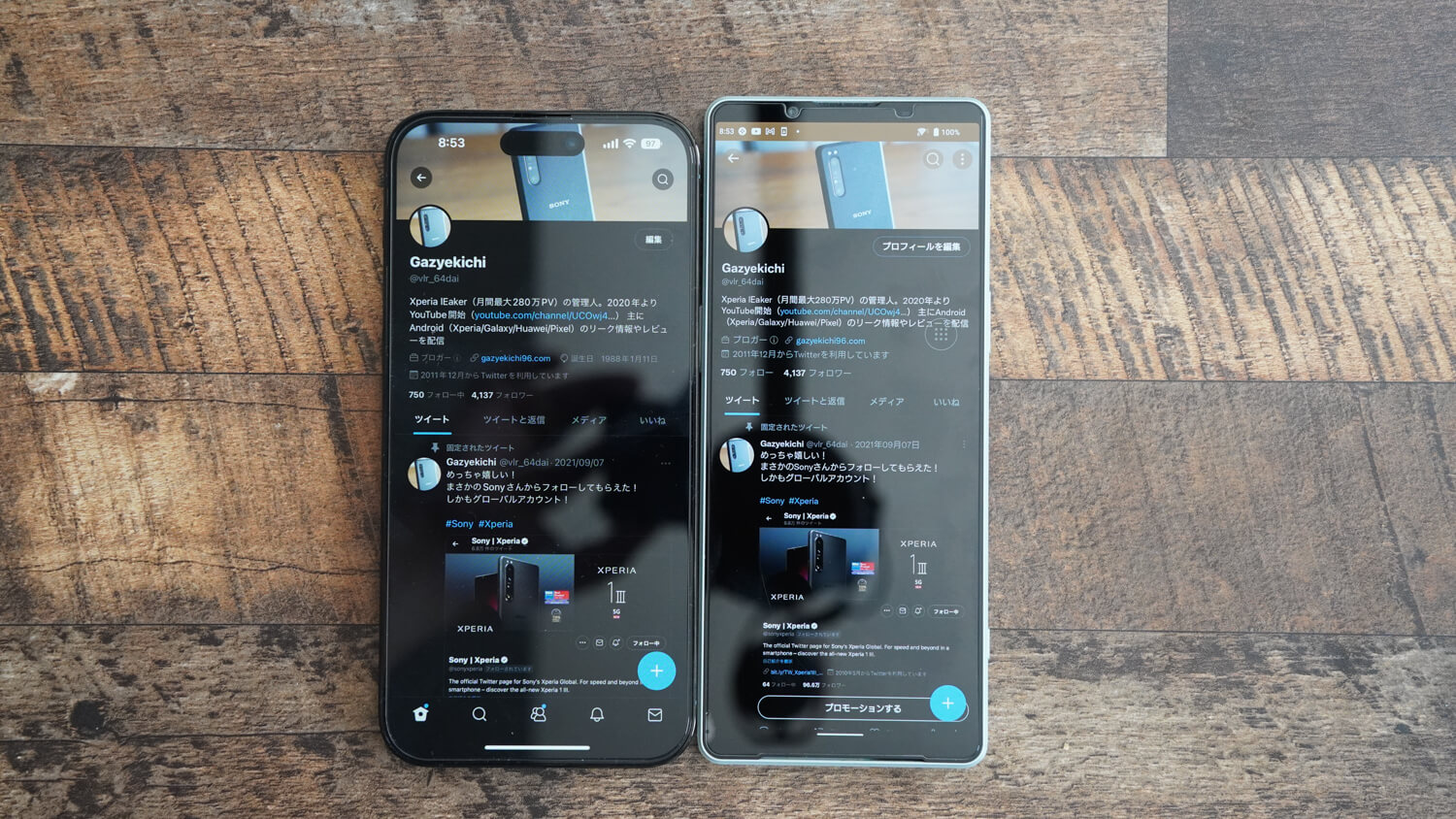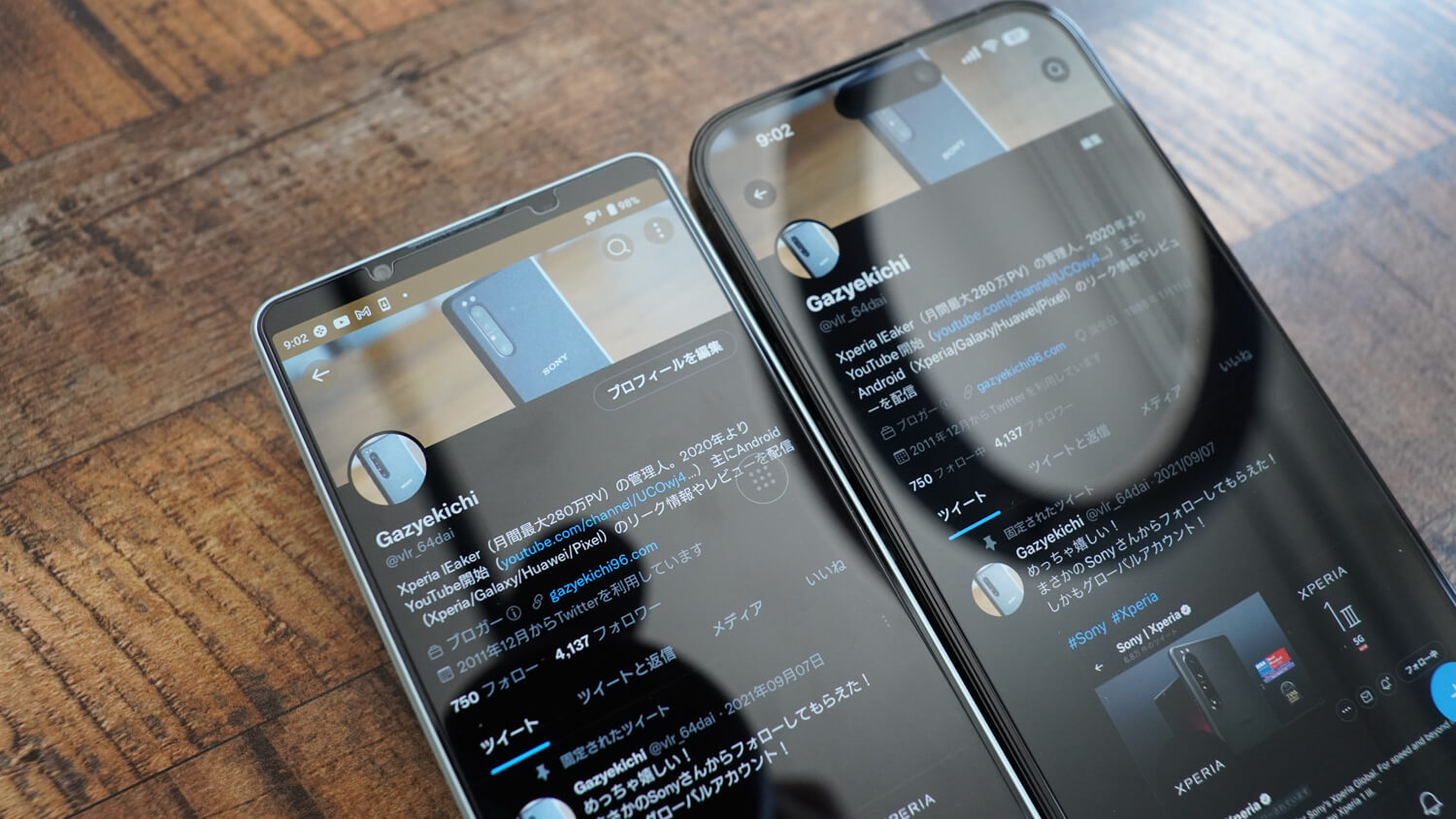 iPhone 14 Pro Maxは明るくて大きくヌルヌル表示でXperia 1Ⅳは高精細にサクサク表示する感じ。