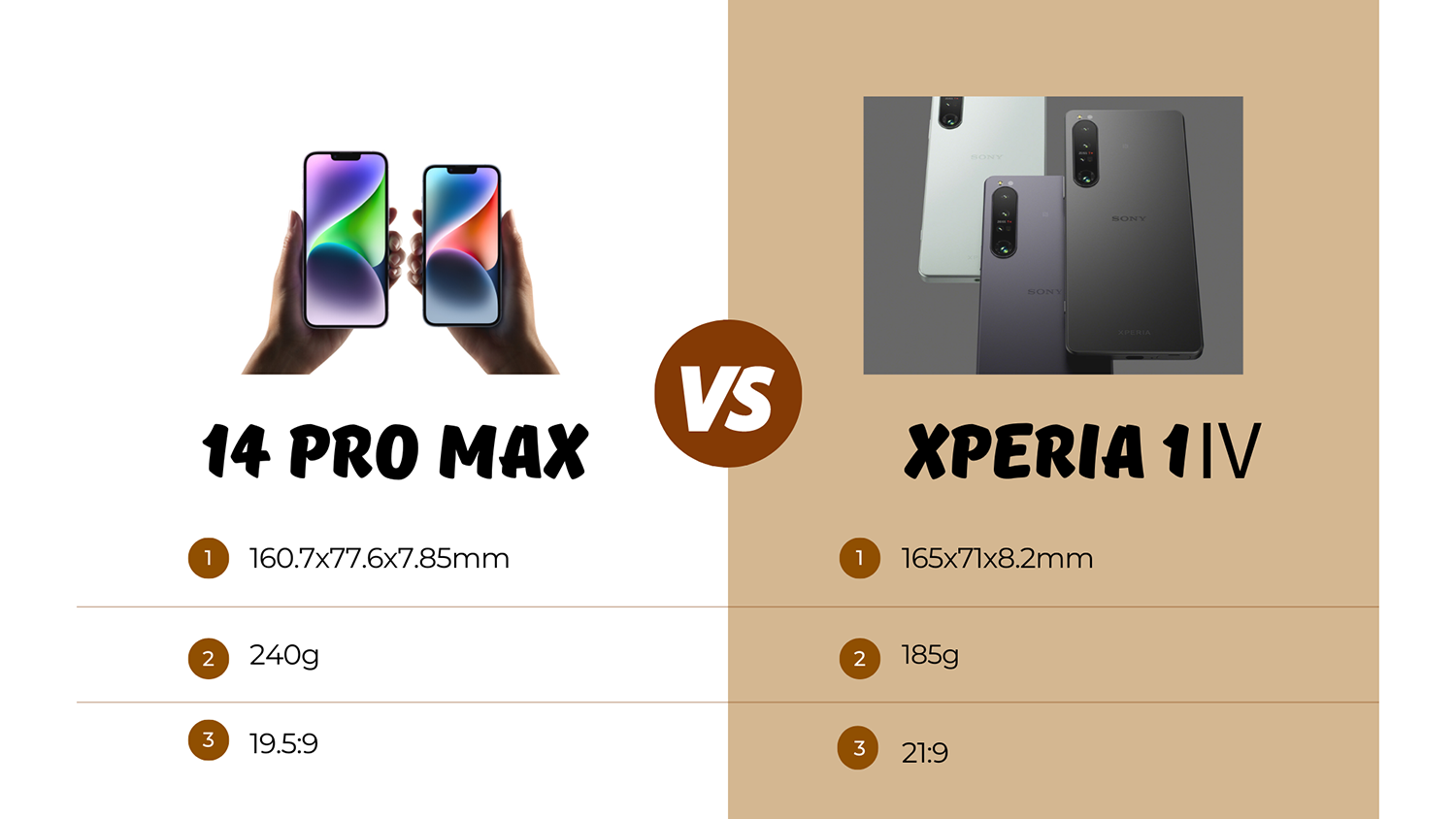 Xperia 1Ⅳは各メーカーの最上位モデルの中でも小柄ならサイズ感である一方でiPhone 14 Pro Maxは大柄な方だからこそ余計に差を感じます。