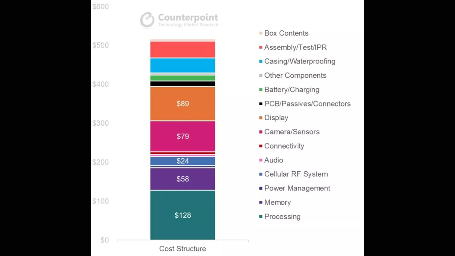 そして今回の情報によるとXiaomi 12S Ultraのベースモデルの原価は約$516程度あるとの予測。カテゴリー別でみると最もコストが高いのはプロセシングでその次に高いのはディスプレイ。