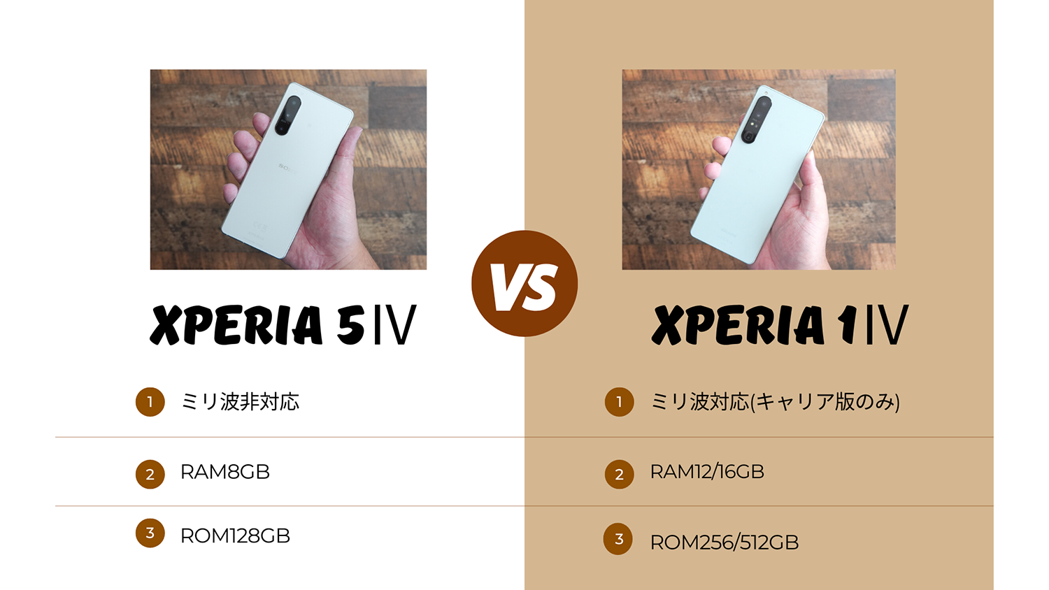 ちょっとややこしいのですがXperia 1Ⅳでもキャリアモデルはミリ波対応で直販モデルは非対応です。自分の生活スタイルや趣味などに合わせて決めるのが一番。
