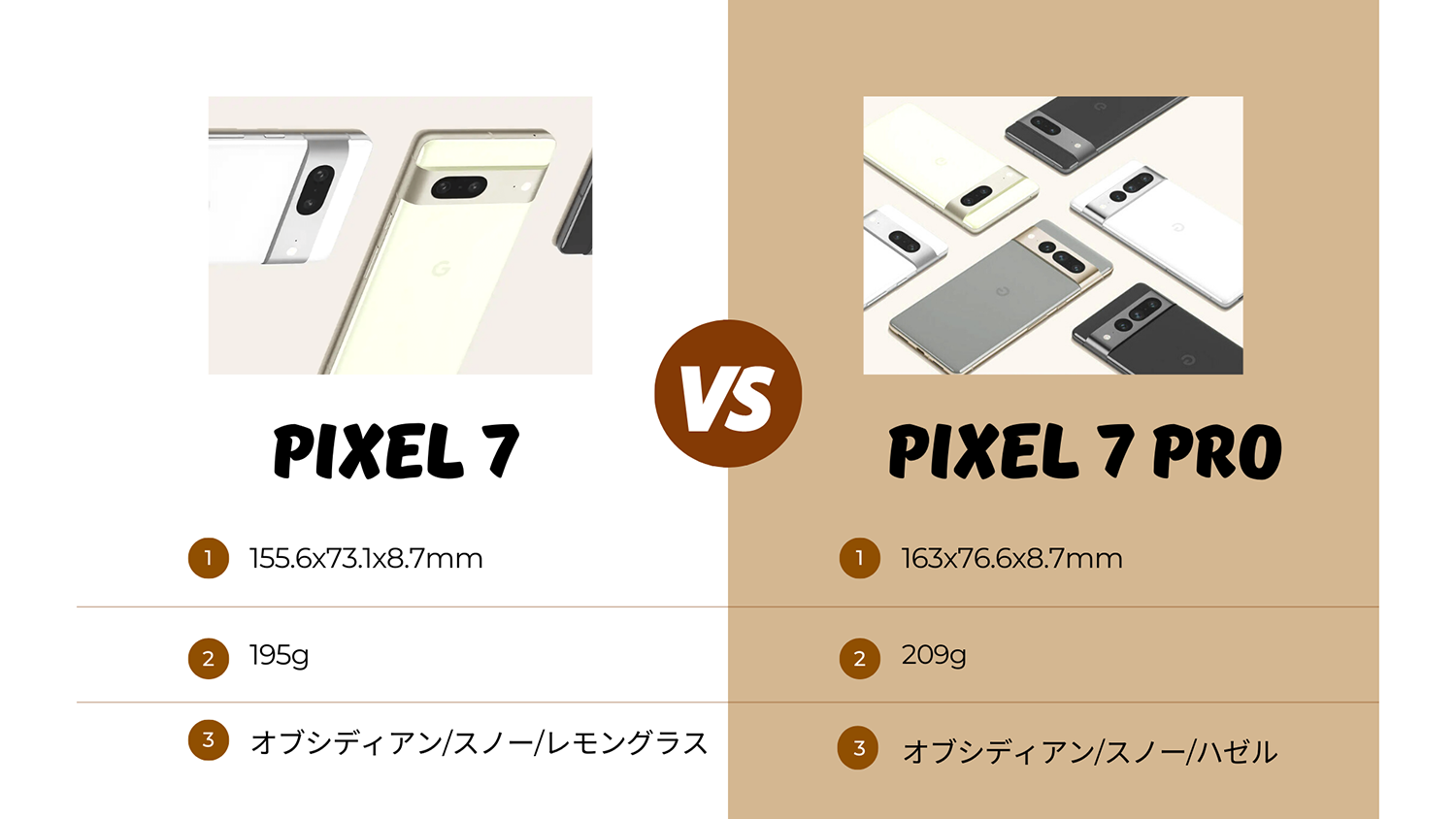 ちなみにカラバリは黒系のオブシディアンと白系のスノーは共通。そしてPixel 7限定としてレモングラスがありPixel 7 Pro限定で発音が不明ですがヘーゼルです。