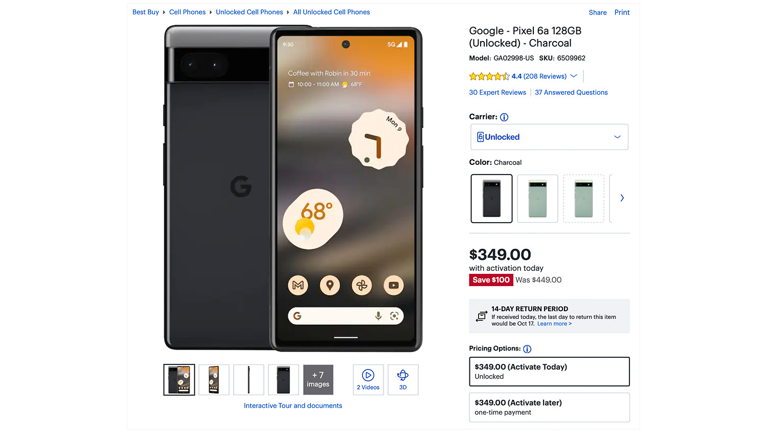 Pixel 7シリーズの正式発表直前のタイミングですが今回の情報によるとPixel 6aが一部小売店で大幅値下げがされていることが判明したとしています。ちなみに状況の画像はBest Buyにおける製品ページです。