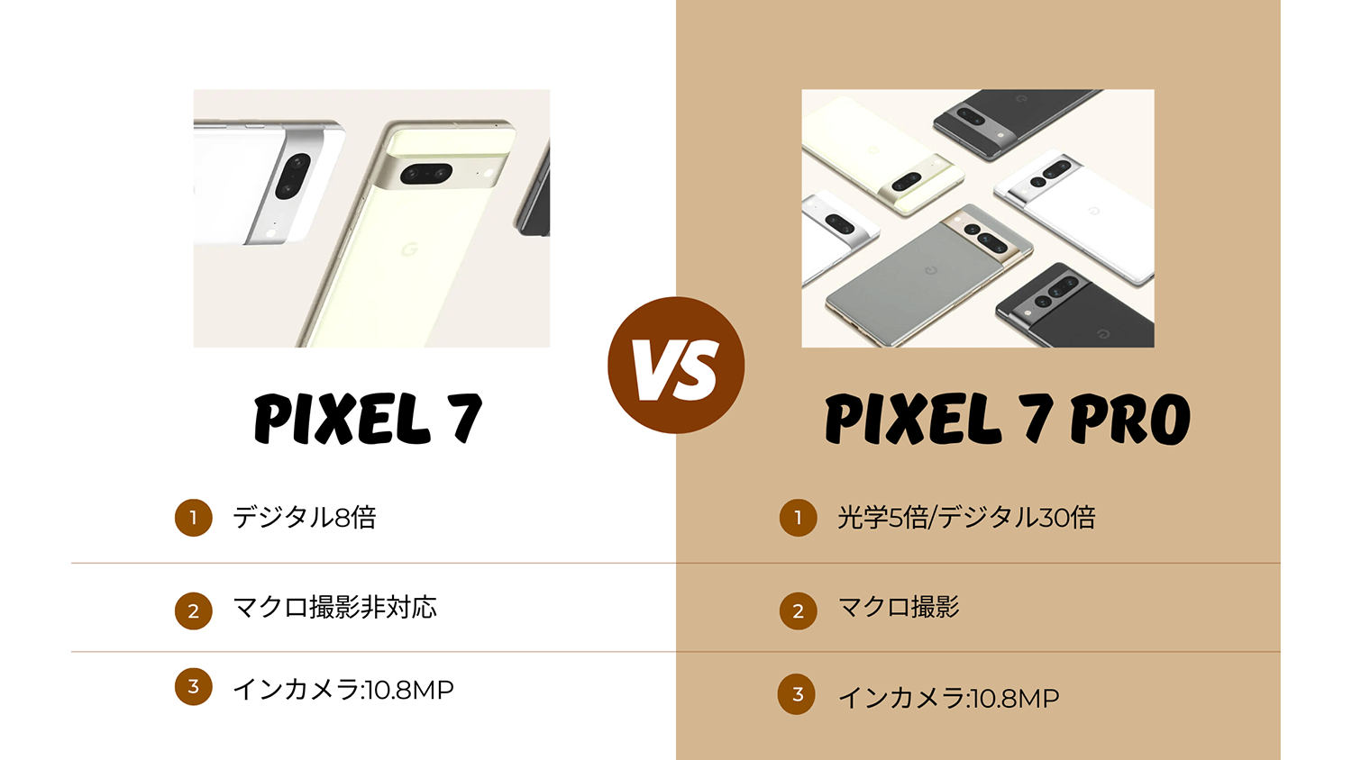 インカメラに関してはSamsungの3J1とされておりPixel 7 Proからみればほとんど変わらない。一方でPixel 7は前モデル対比で大幅に進化しておりセルフィー撮影の画質改善にも期待できます。