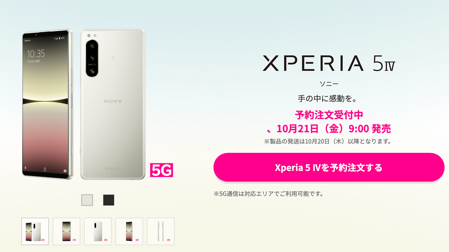 10月下旬以降の発売予定としたRakutenですが今回Xperia 5Ⅳを10月21日より発売することを明らかにしました。ちなみにauとSoftbankに関しても10月下旬以降の発売としていることからもRakutenと同日になる可能性があります。