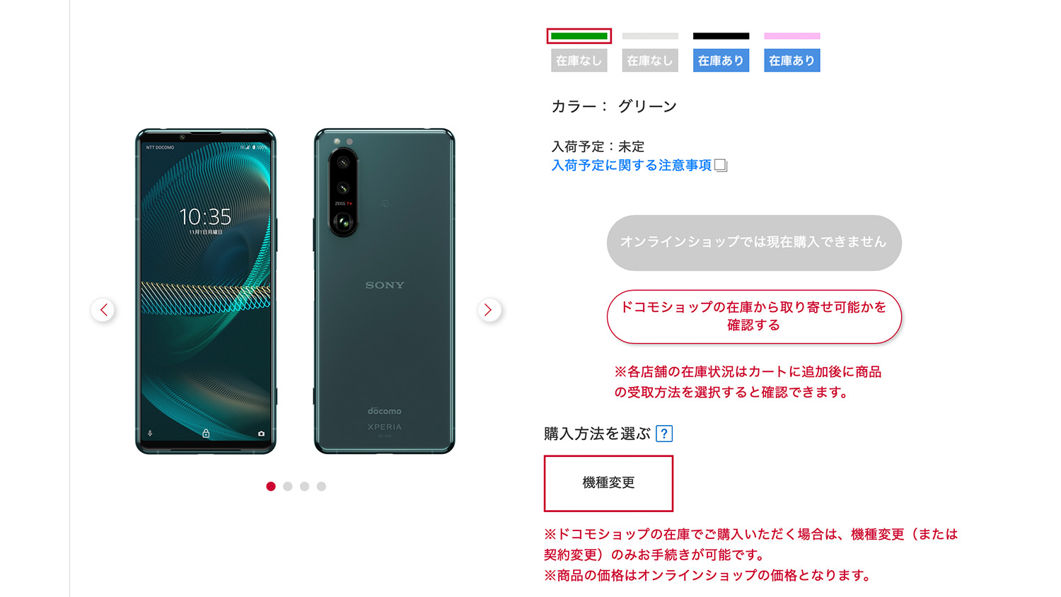 ちなみに各キャリアの在庫状況を確認するとdocomo版の価格は11万3256円でブラックとピンクが在庫ありで他の2色に関しては実店舗に在庫があれば取り寄せ可能という感じです。