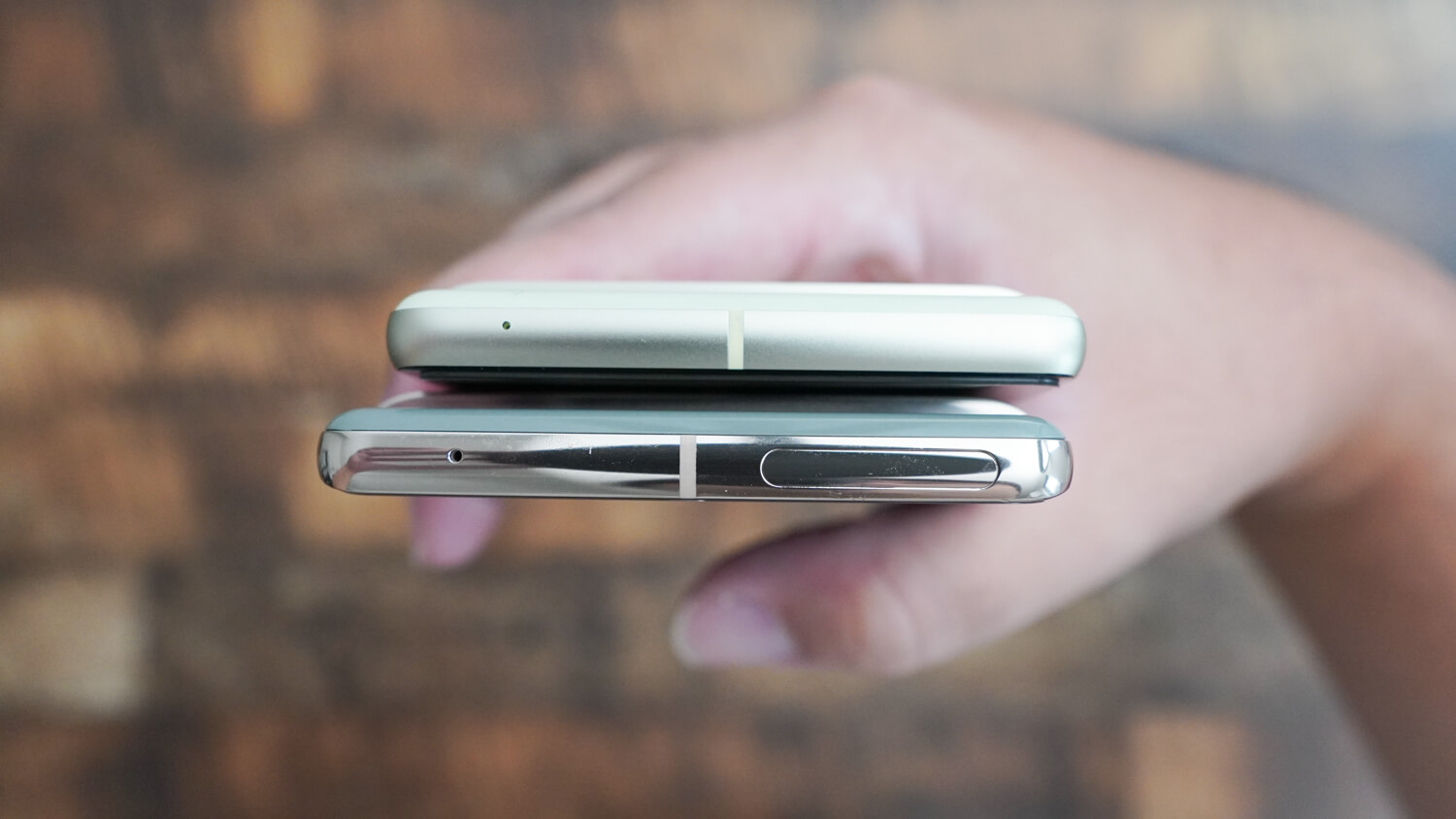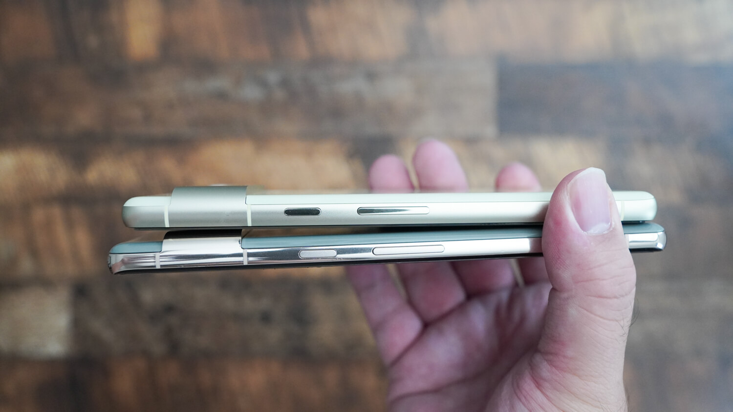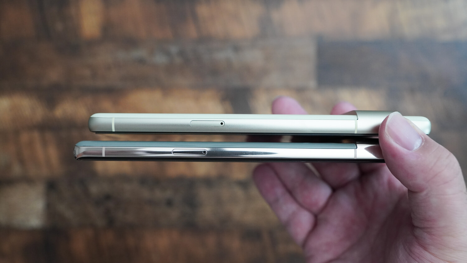 またサイドフレーム側から見ればPixel 7 ProはEdgeスタイルを採用しているためよりスリムに。そのため本体の厚みは一緒なのに側面だけで比較するとPixel 7の方が分厚いと錯覚します。