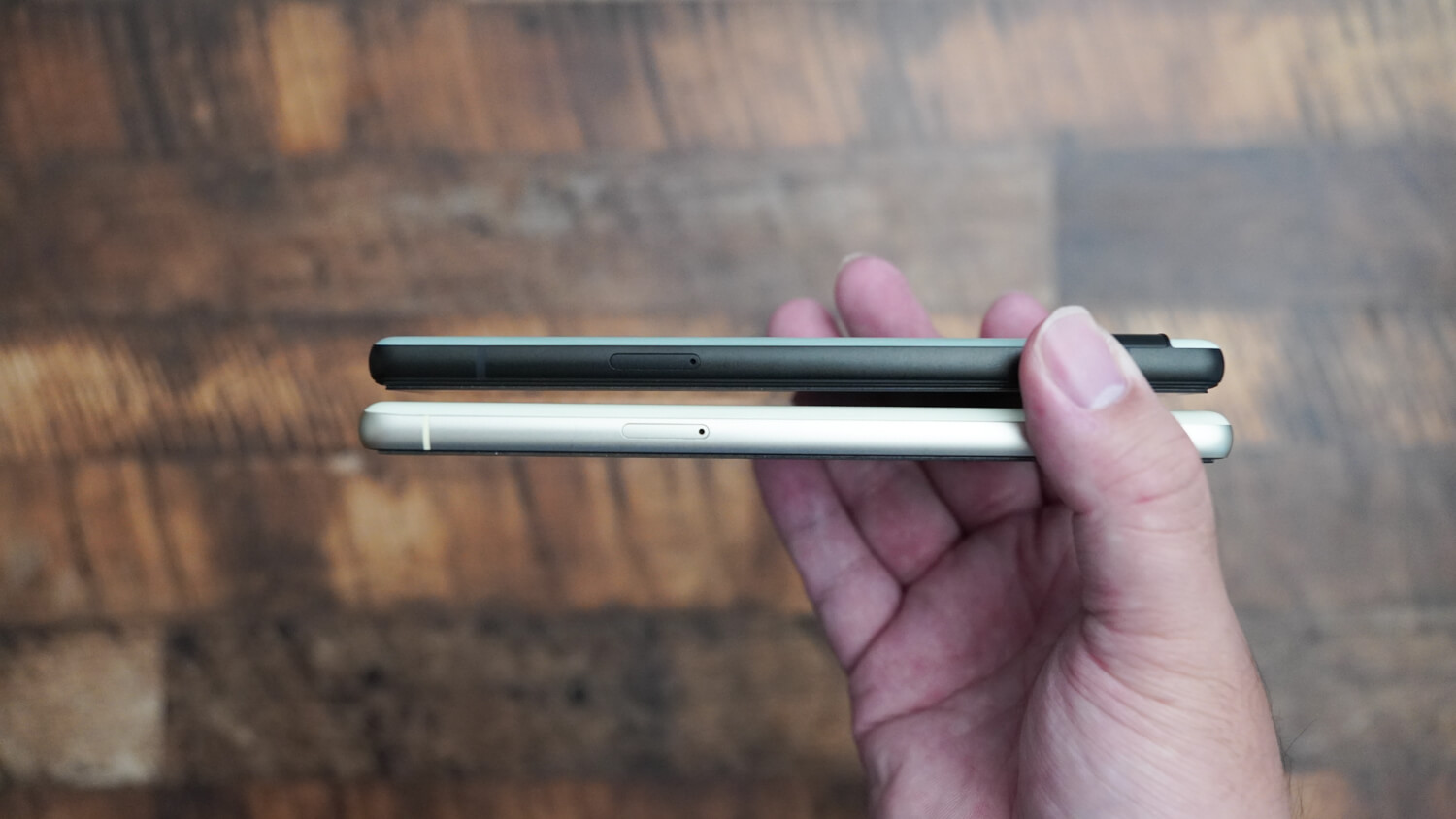 筐体サイズは大きな差がある訳ではなくPixel 6aが地味にデカいからこそ差がない印象ですがやはり持ち比べるとPixel 6aの方が良い。本体の厚みの差はあれど片手操作する際に丁度いいと思えるのがPixel 6aです。