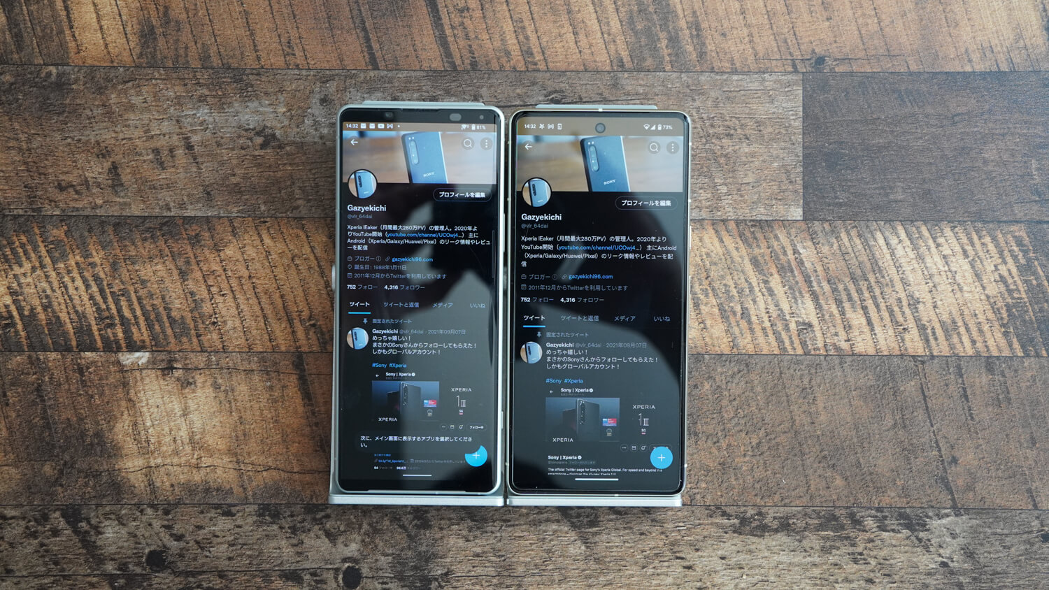 次に2つ目としてディスプレイ輝度の差でTwitterやKindleを見ている限りだとXperia 5Ⅳの方が明らかに明るいです。執筆時点でPixel 7の手動調節の場合の最大輝度が不明ですがXperia 5Ⅳの660nits前後の方が明るく感じる。