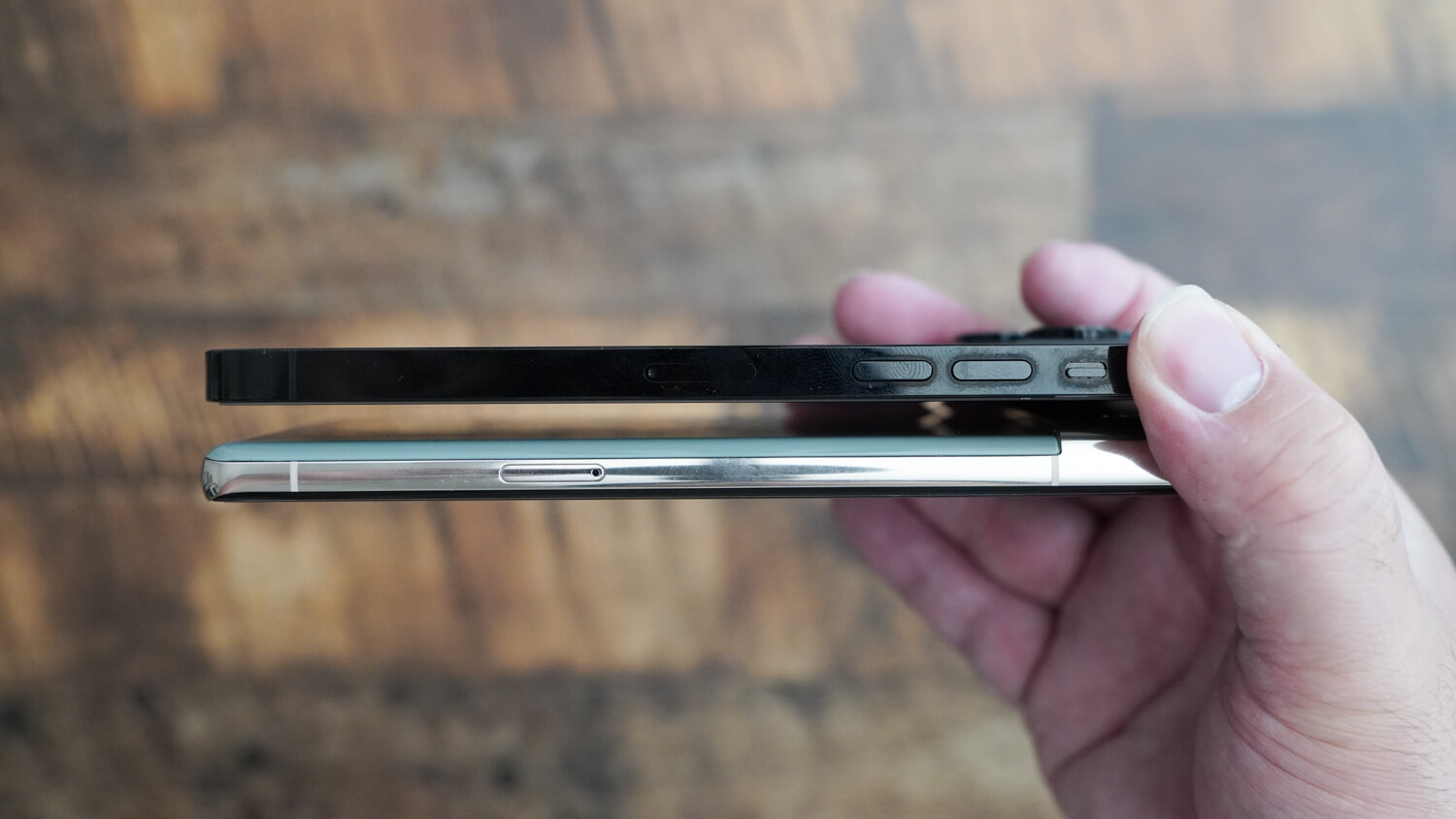 個人的にはiPhone 14 Pro Maxの方がデザインが洗練されている印象を受けますが良し悪しがあるという感じです。
