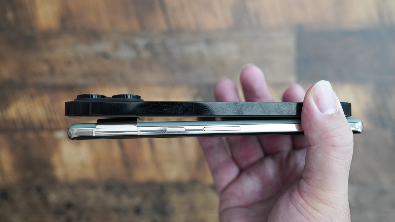 そしてiPhone 14 Pro Maxは音量ボタン自体が本体の左側面に搭載されていることに違和感あり。これはAndroidユーザーから見てもiPhoneユーザーから見ても違和感があると思います。