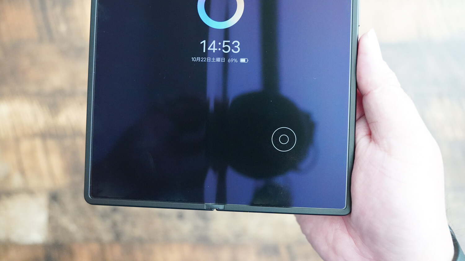 メインディスプレイに関してUTGの採用に加え水滴型のヒンジを採用しているためディスプレイの折り目はGalaxy Z Fold 4と比較すると目立ちにくいですが目立たなくはない。