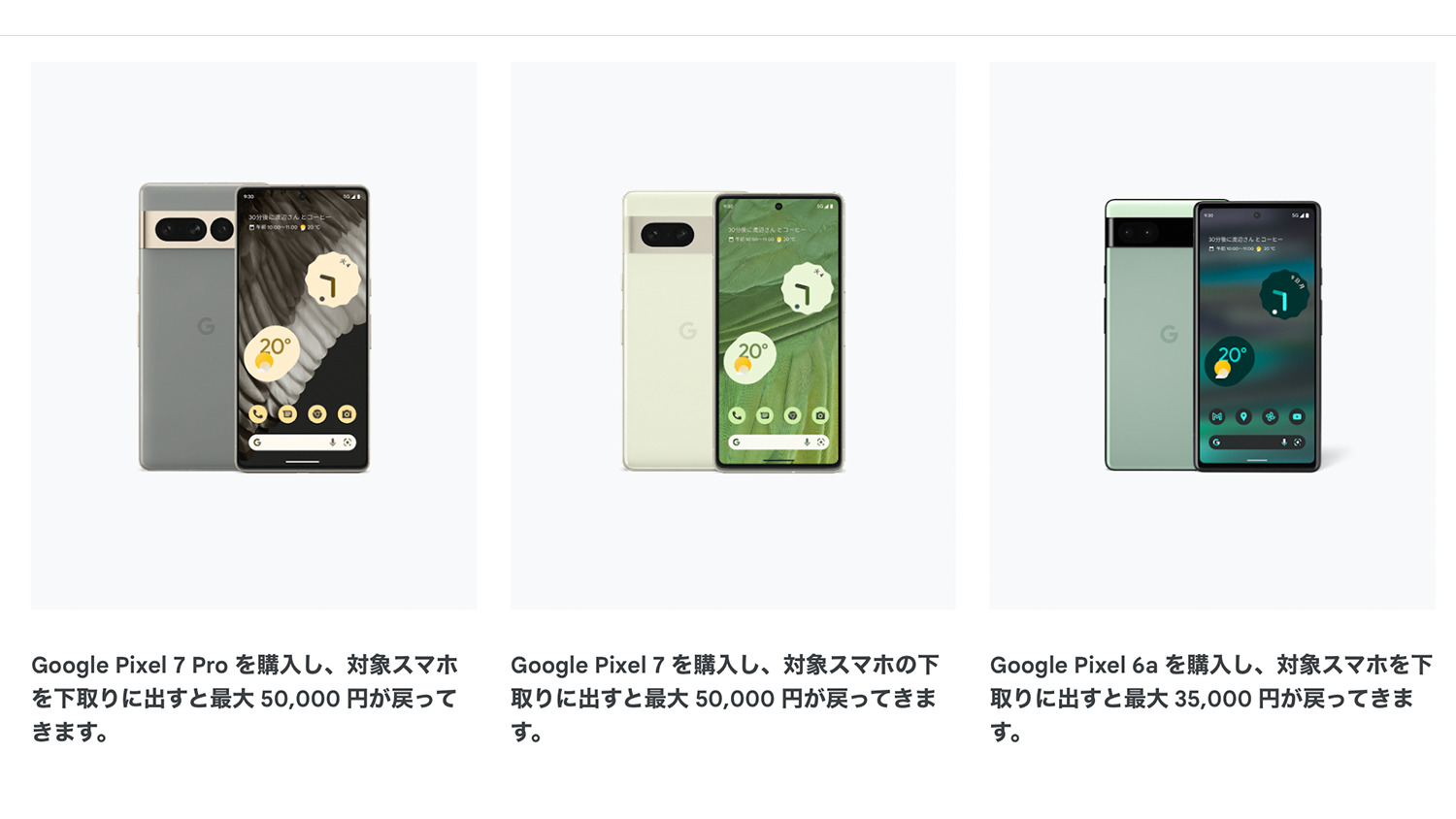 | Pixel 7/Pixel 7 Pro | Pixel 4/Pixel 4 XL | 3万5000円 |