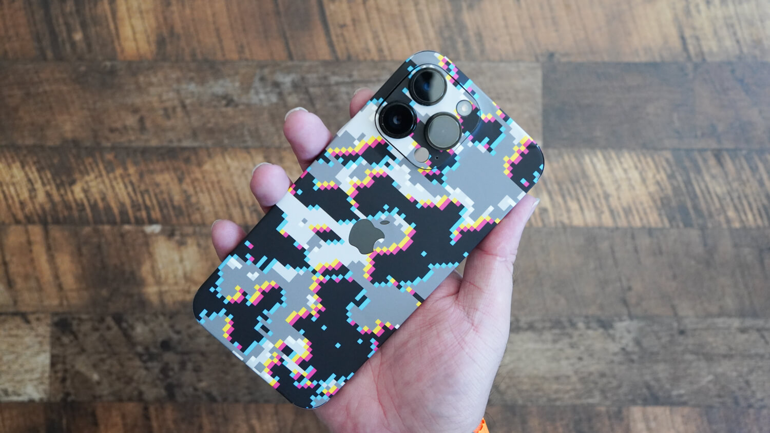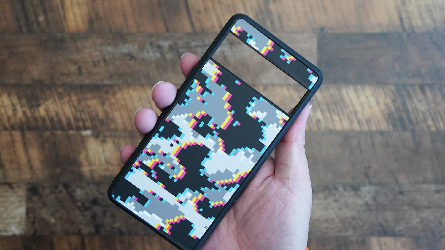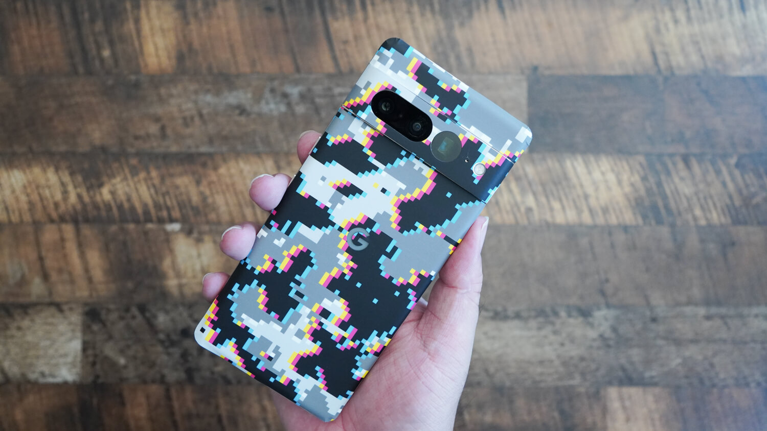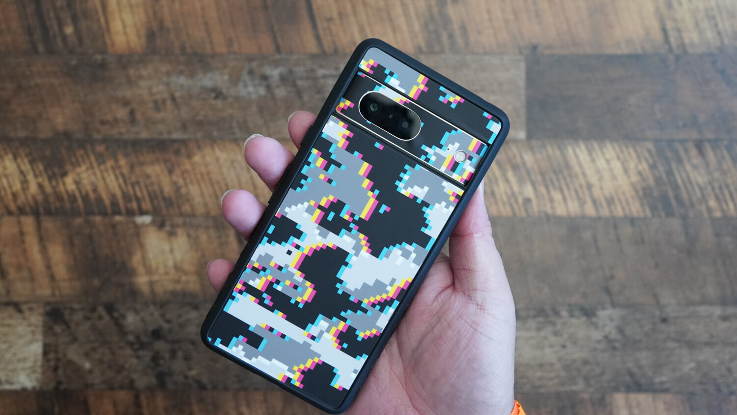 そして今回は外出する際のメンバーを全て同じデザインで統一してみようと思い購入。今回dbrandでiPhone 14 Pro Max/Pixel 7 Pro/Pixel 7用のグリッチ迷彩という柄を購入しました。