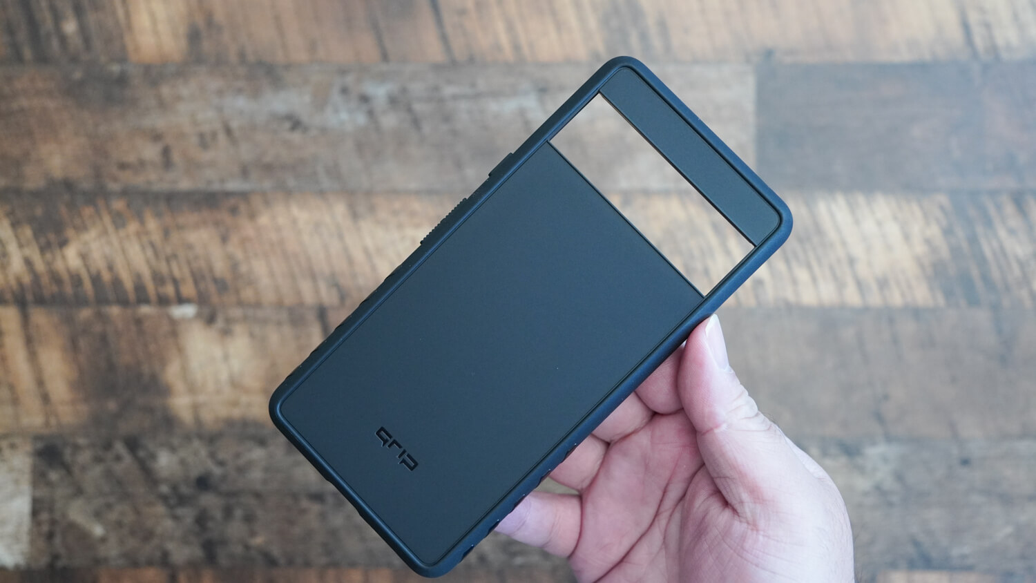 背面部分だけがグリッチ迷彩になる感じでサイド部分はケースの色であるブラックのままです。ケースタイプのメリットはしっかりとしたケースに入れていることに違いはないので耐久性がある。