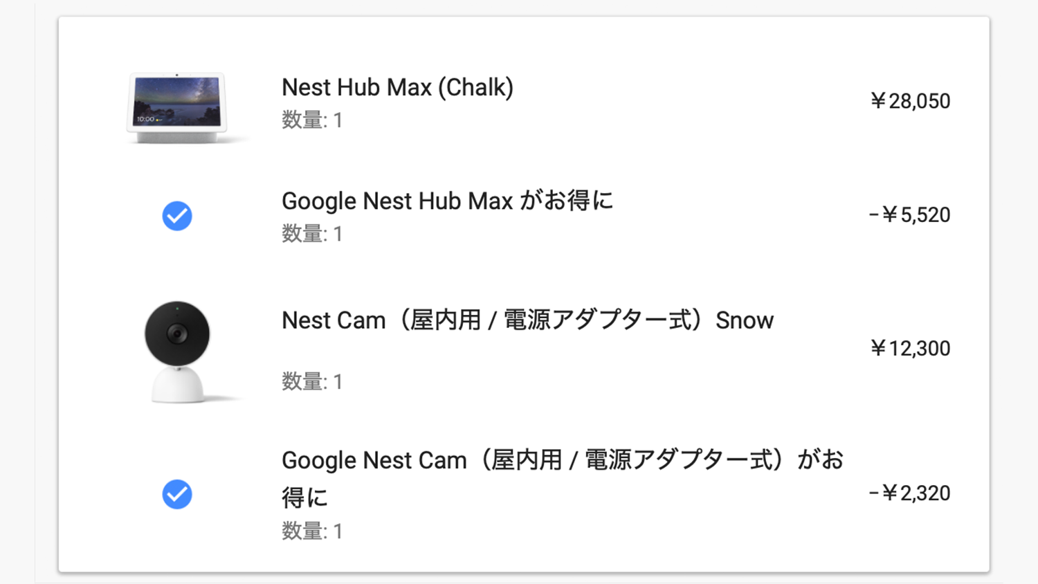また手持ちにNest製品が割引になるクーポンがあったので使おうと思ったら今回のセールと併用ができず定価+クーポンの方が合計金額で2000円くらい高いという感じだったので今回はセール価格でクーポンなしで合計で約3万2000円くらいで購入したという感じです。