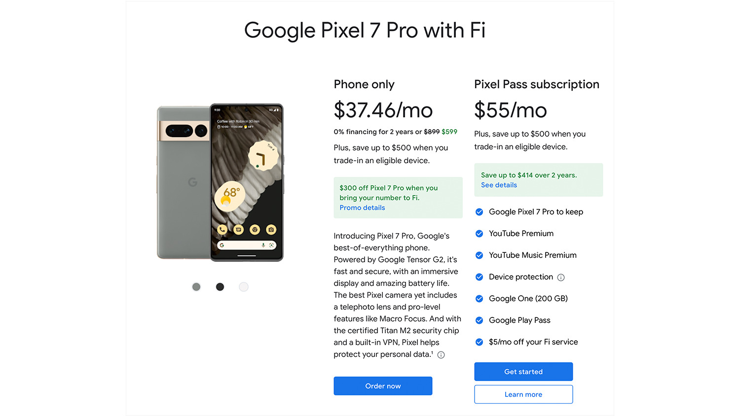 上記の画像からも$300の値引きで僅か$599とPixel 7の定価と同じ価格で購入が可能です。また下取りが条件ではないこともポイントの一つです。
