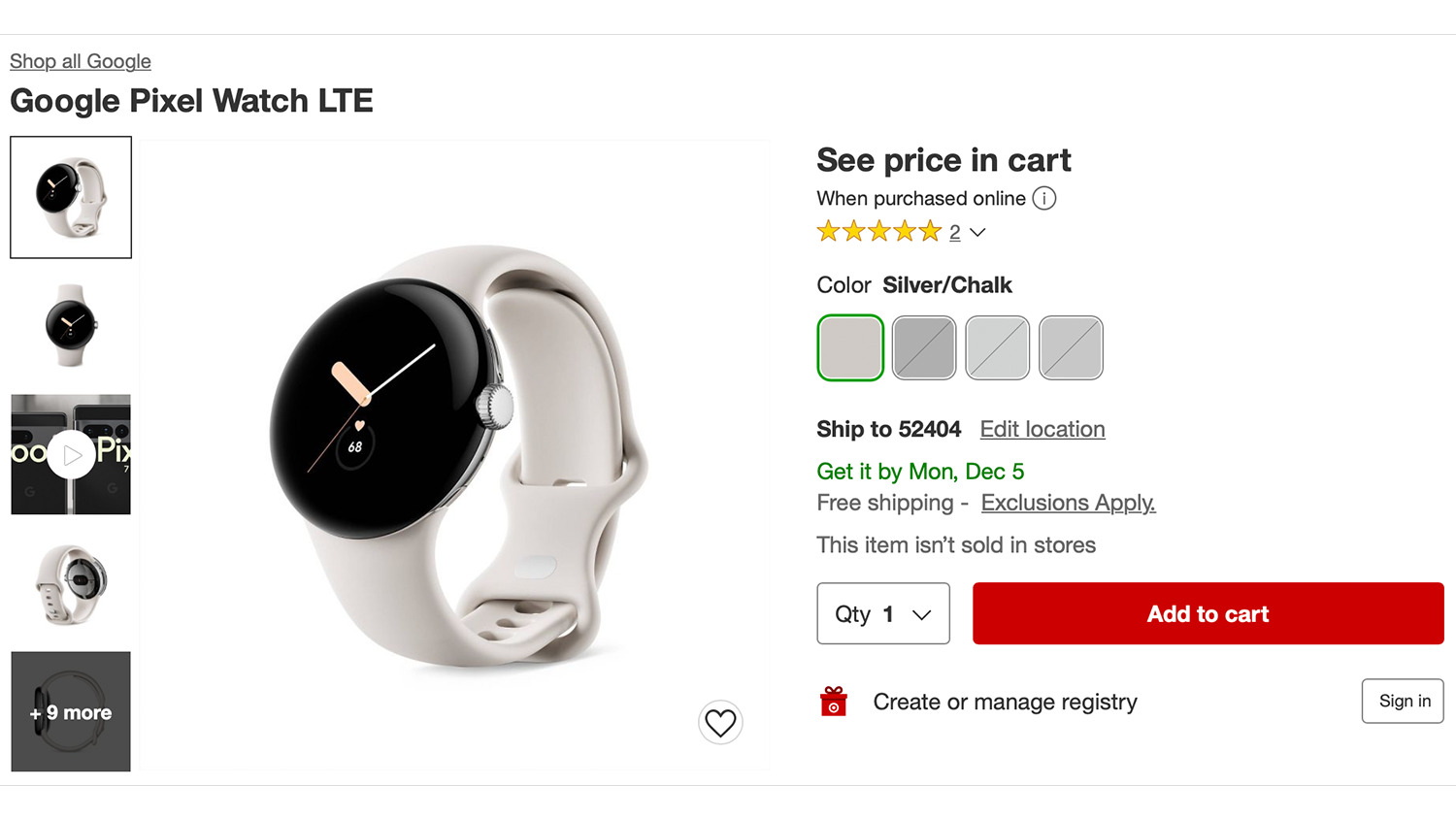 ブラックフライデーと悲角するとサイバーマンデーはより多くのガジェットがセール対象になることが多く、今回の情報によると米targetがLTE対応のPixel Watchを$50の値引きで$349で販売していることが判明したとしています。