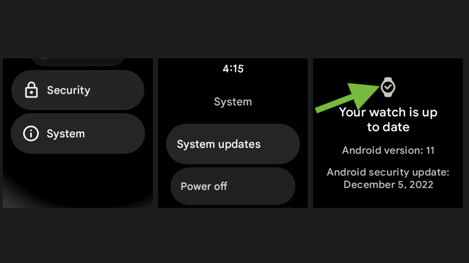 最初はPixel Watchアプリの方でやるのかと思っていましたが実際にはPixel Watch本体の設定/システム/システムアップデートをタップして確認します。