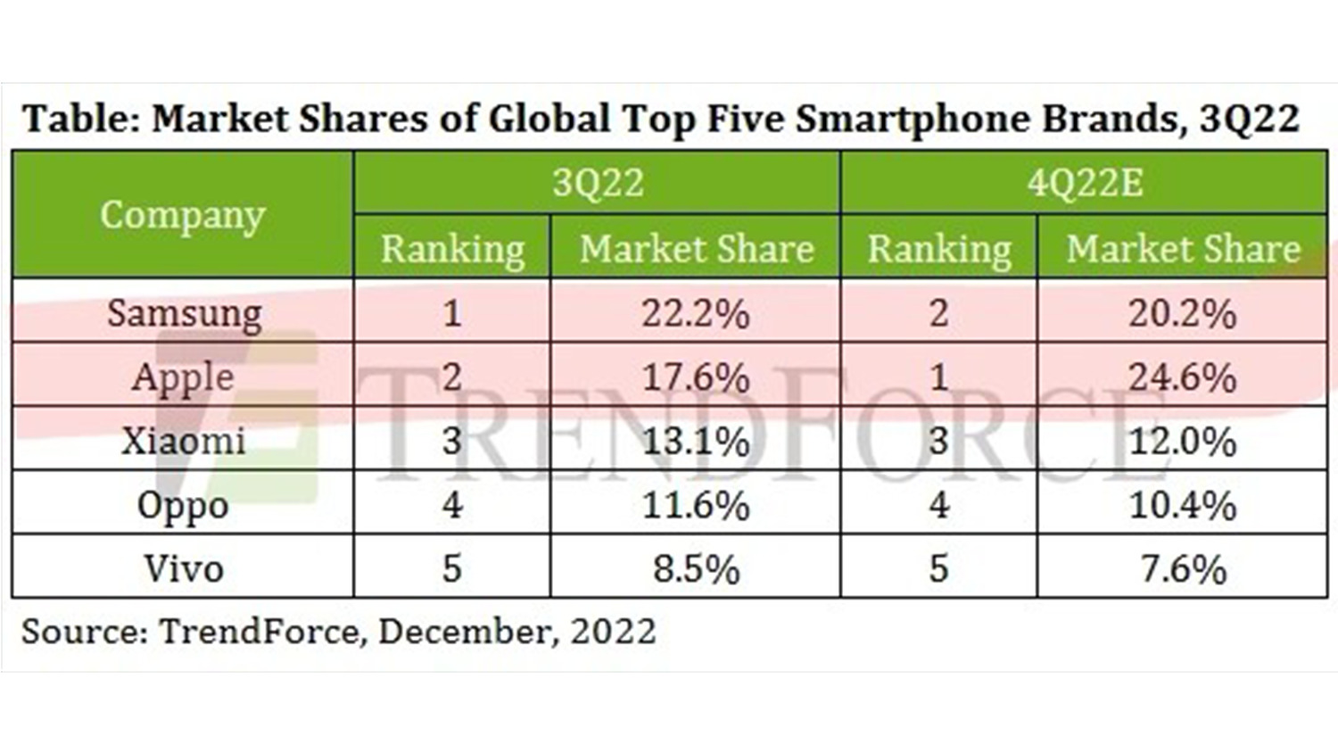 上記の画像からも第4四半期においてAppleが24.6%を獲得してシェア1位の可能性。ただAppleは第4四半期においてはシェア1位を獲得することがあるので驚きはありません。