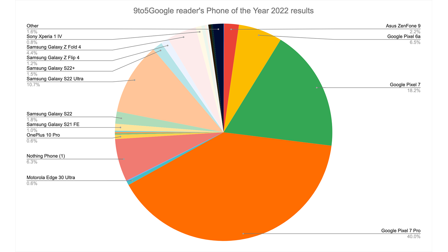 今回同サイトが読者に対してアンケートを行なっておりその結果を公開しました。上記の画像からもPixel 7 Proが圧倒的1位の40.0%を獲得していることを確認することができます。