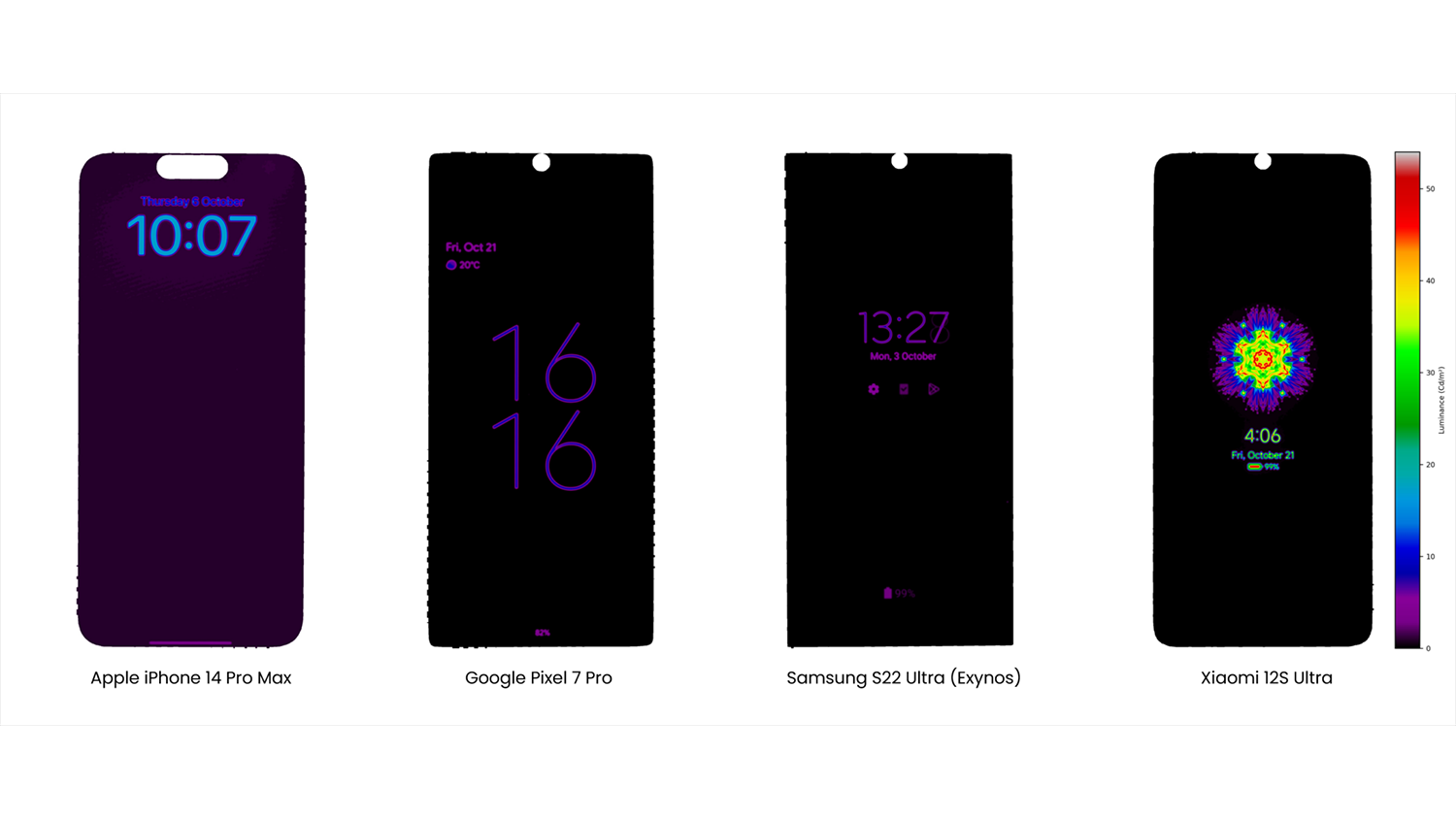 途中過程は飛ばしますが今回のテストで判明したこととしてiPhone 14 Pro Maxは最も平均的にディスプレイが明るいけど消費電力が抑えられており常時表示オンディスプレイに対して最適化されている。
