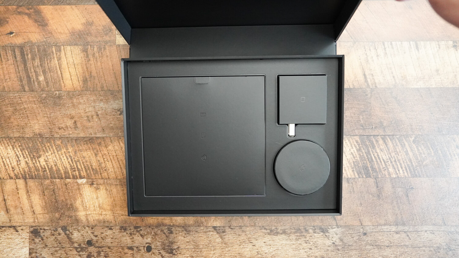 まず開封をしていきたいと思います。化粧箱は中華メーカーの折畳式機種ではよくある横長形状。