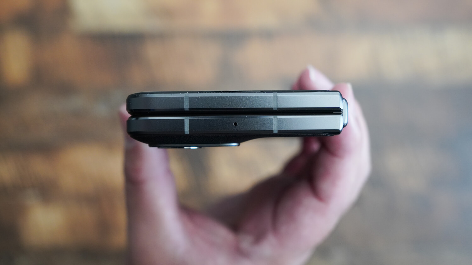 ちなみに水滴型のヒンジを採用したことで折り畳んだ時にヒンジ付近に隙間が出来ないのは嬉しい。ここに隙間ができるとメインディスプレイ側に塵などが入ってしまうので地味にうざい。