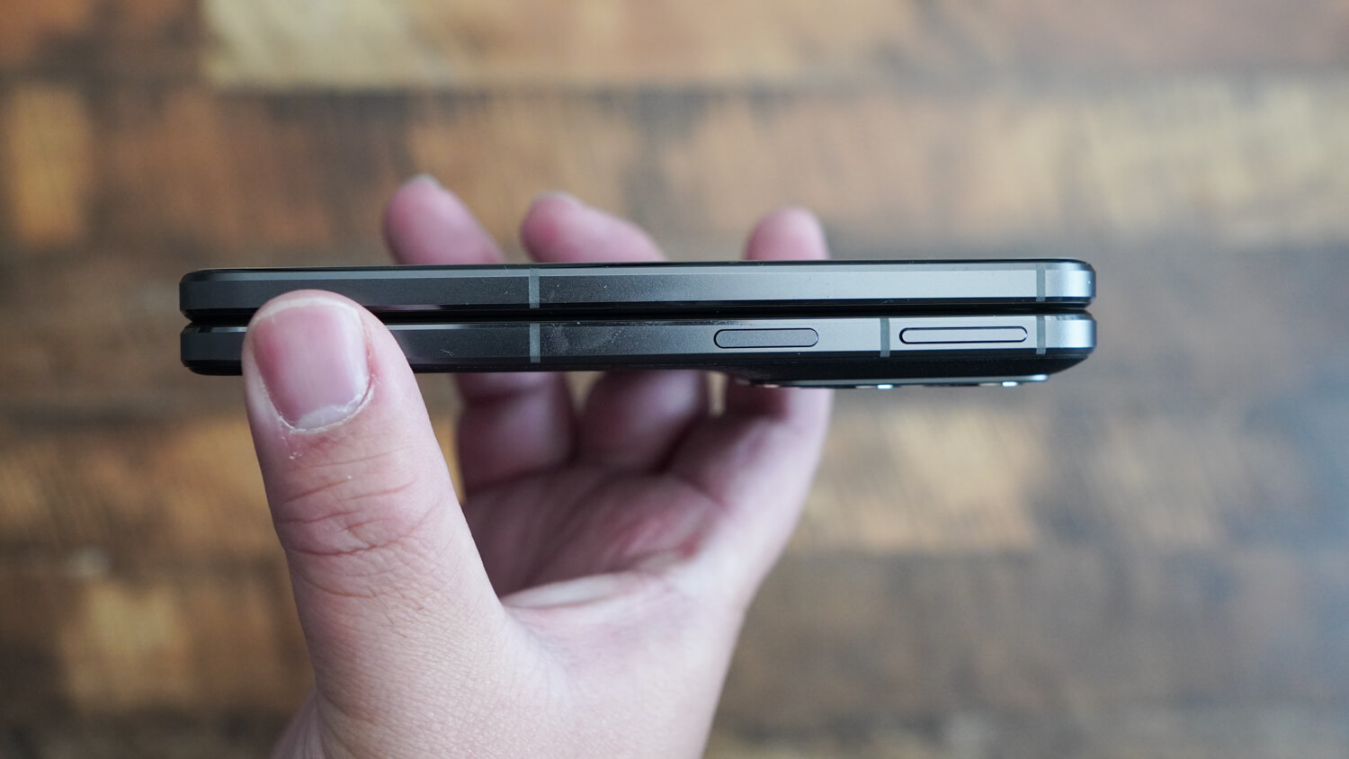 またスペック上だとサブディスプレイ側の厚みが7.1mmでバッテリー側が7.4mmと厚みが異なりこれはカメラバンプによる差だと思います。