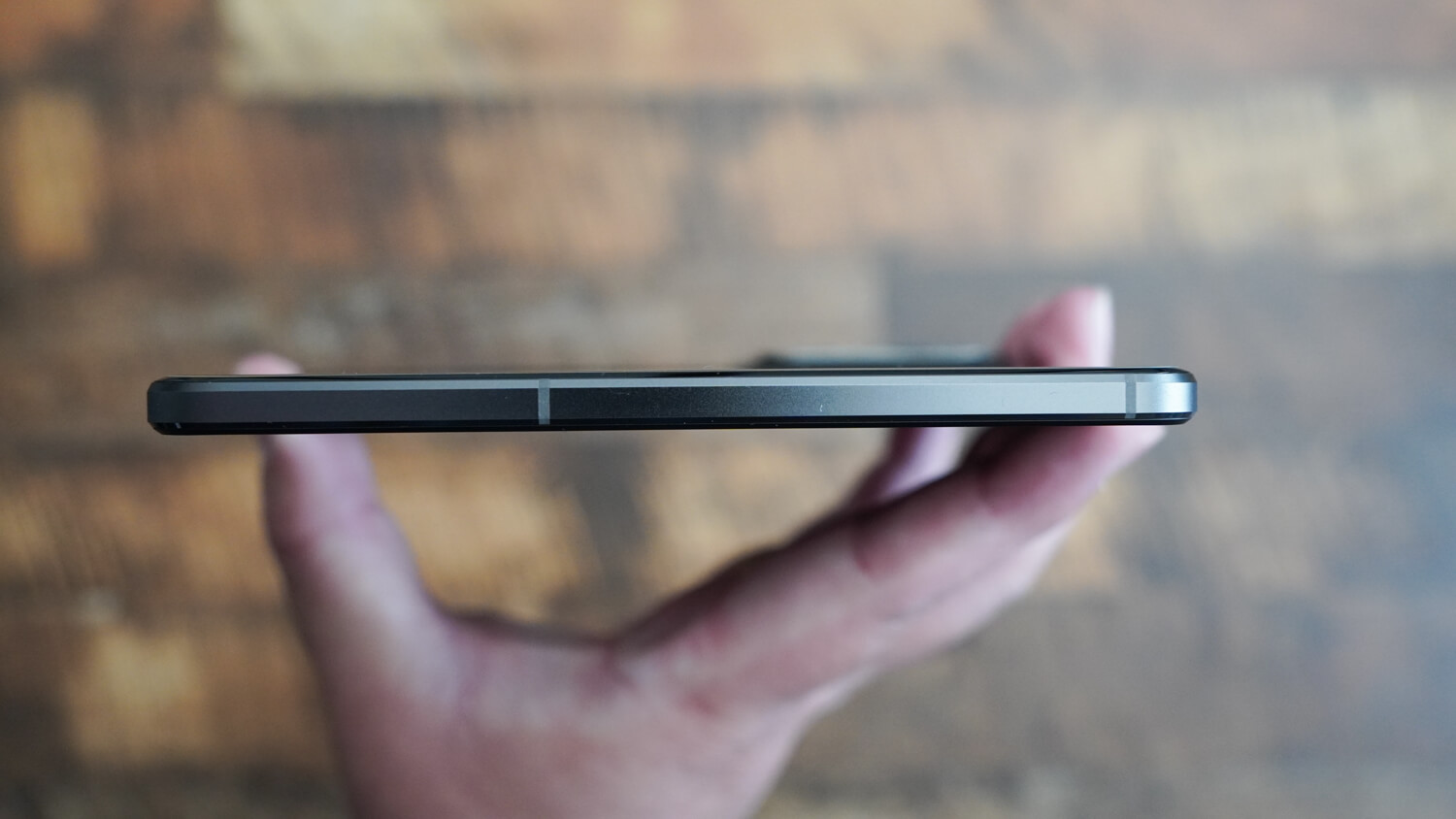 そして本体下部にUSB-CにSIMトレイにスピーカーを搭載しています。サイドフレームの材質はアルミなのかフラットな形状のため単純にかっこいいと思います。