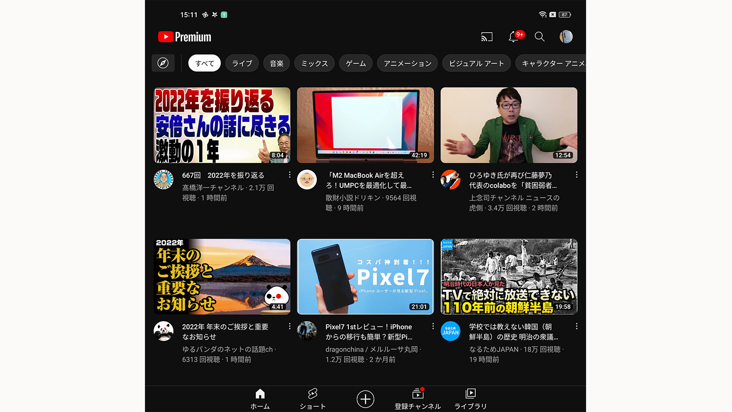 ただ一方で気になったのがコンテンツの表示です。まず上記の画像はYouTubeのトップを表示した画像になります。