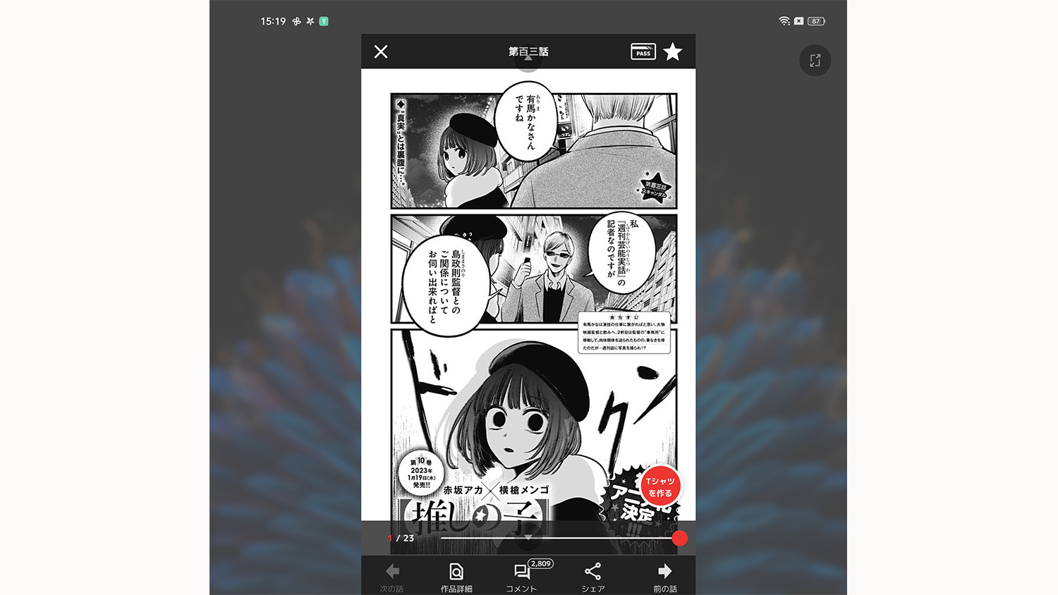 まず標準のアスペクト比16:9で少年ジャンププラスの漫画を表示した画像です。