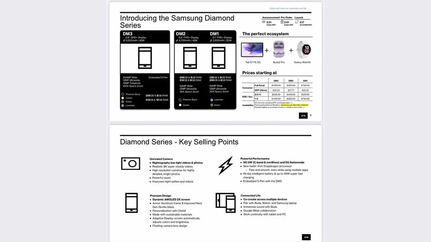 そしてGalaxy S23+は$999からでGalaxy S23 Ultraは$1199からとなっており現行モデルから据え置きの価格になっていることを確認することができます。ただ注意点としてはあくまでもVerizonの価格であり他のキャリアの価格が一緒かは現時点で判断できません。