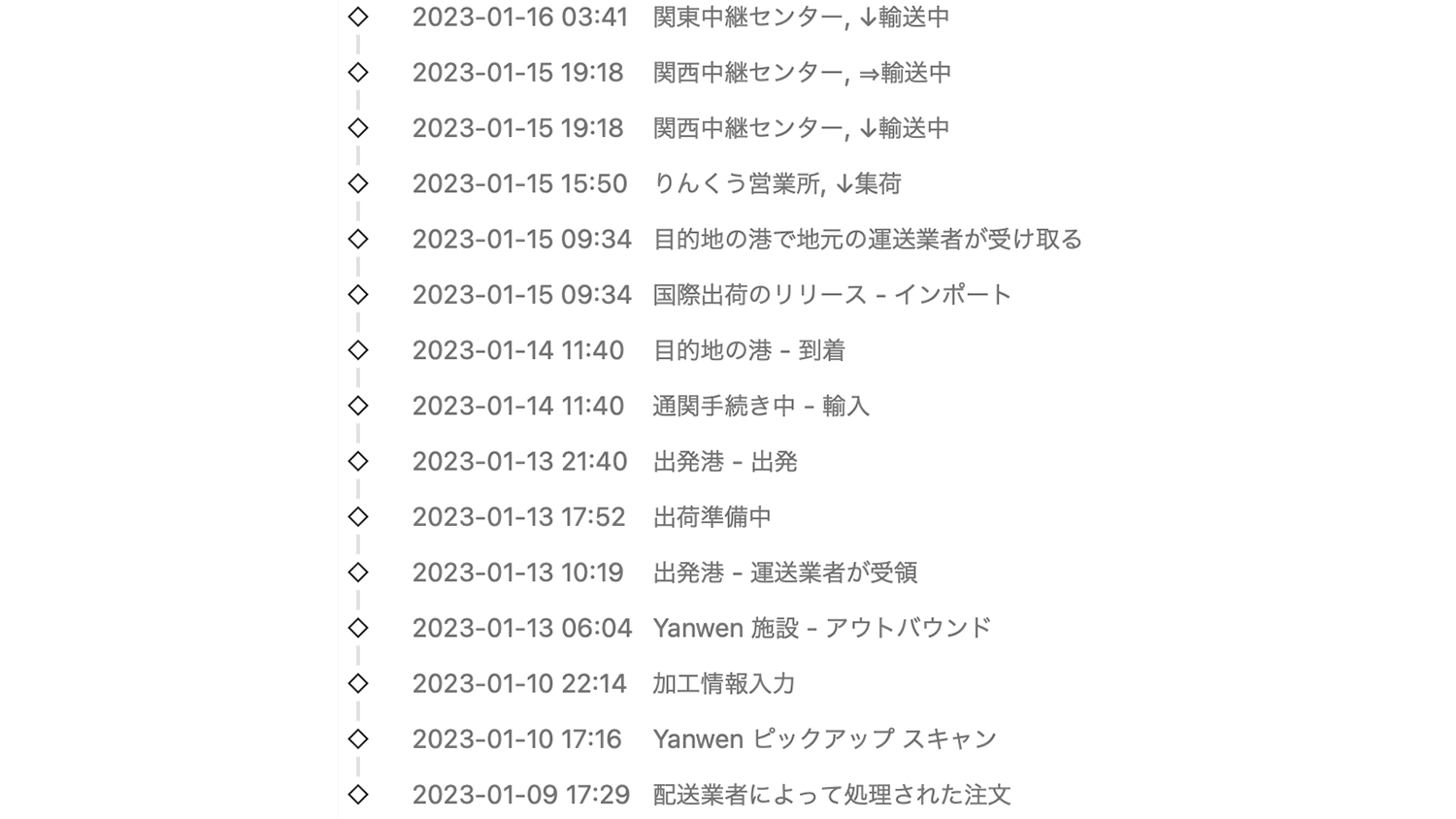 配送履歴においてYanwenから発送されており結果手元に届いたのは1月16日で土日はさんだとはいえ1週間要しています。PITAKが中国の企業であることは把握していて最初から中国からの発送となっているのであれば納得です。