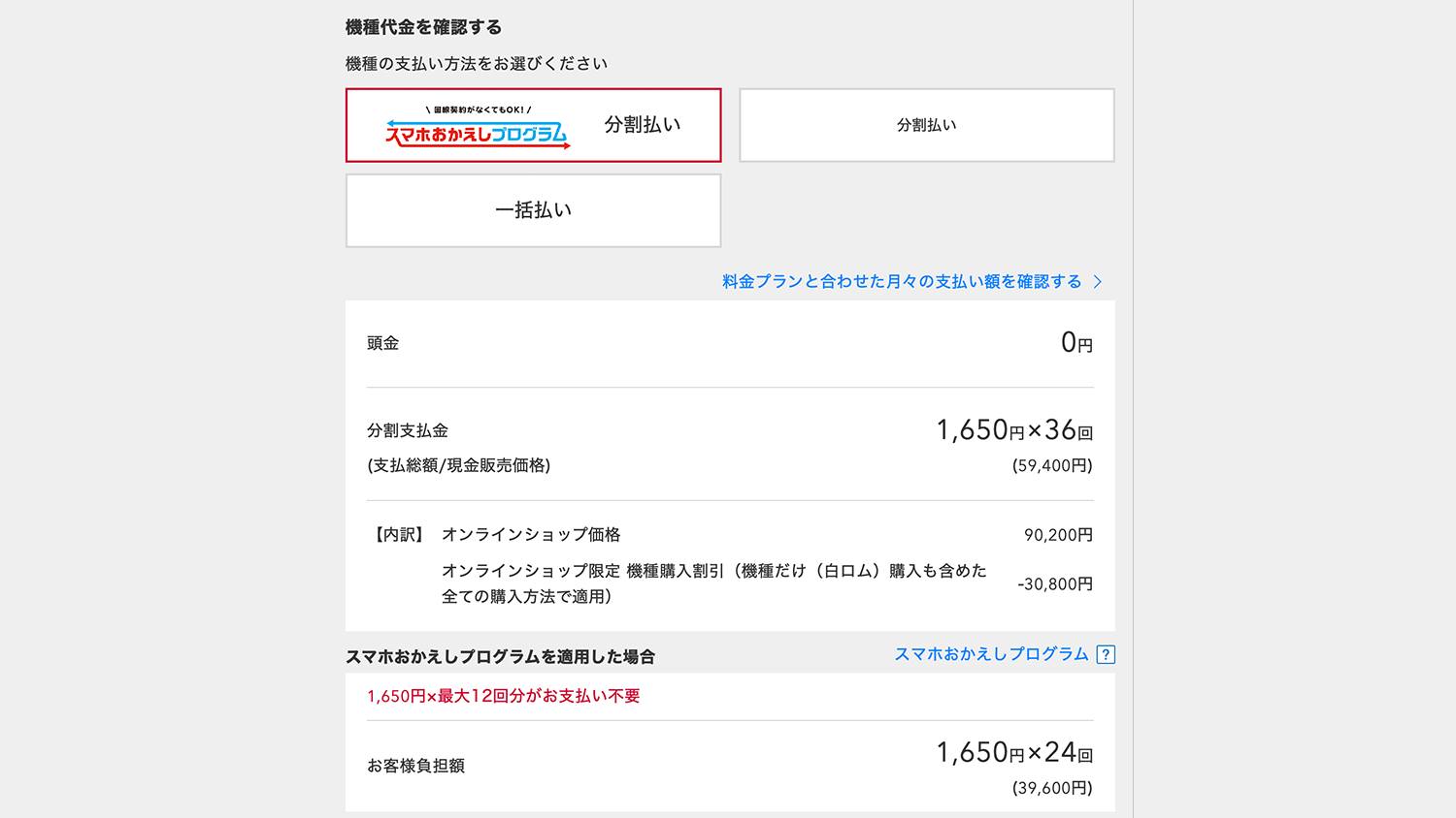 上記の画像からも割引後の一括価格が5万9400円でおかえしプログラムを利用して3万9600円で購入可能とハイエンドモデルであることを考えると地味に安いと思います。