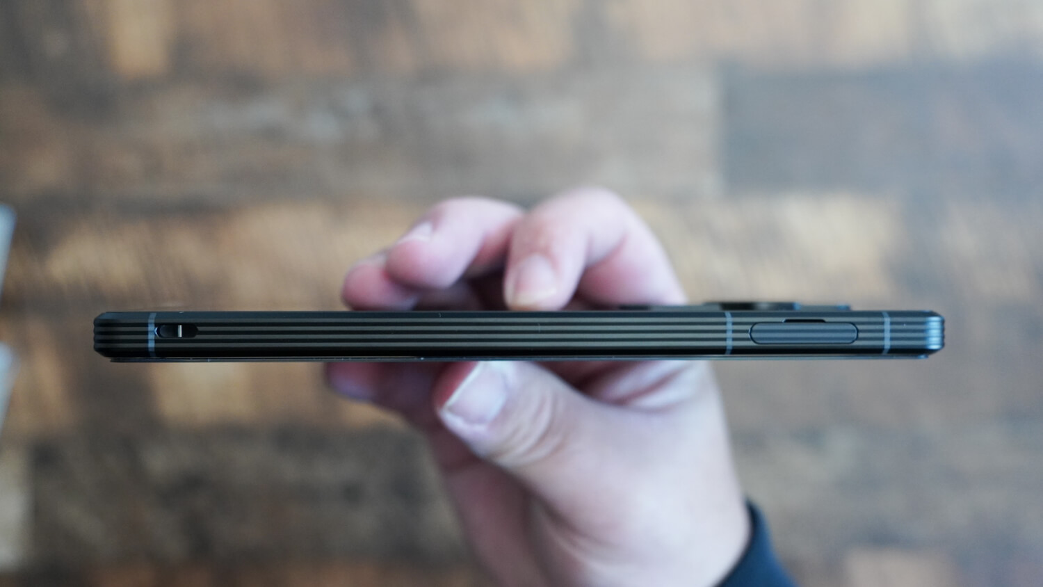 左側面は特段何もなく本体右側面は音量ボタンに指紋認証が統合された電源ボタンとカメラキーを搭載。一時期新たな物理ボタンが搭載される可能性があるとの噂がありましたが今回の画像では確認出来ず。