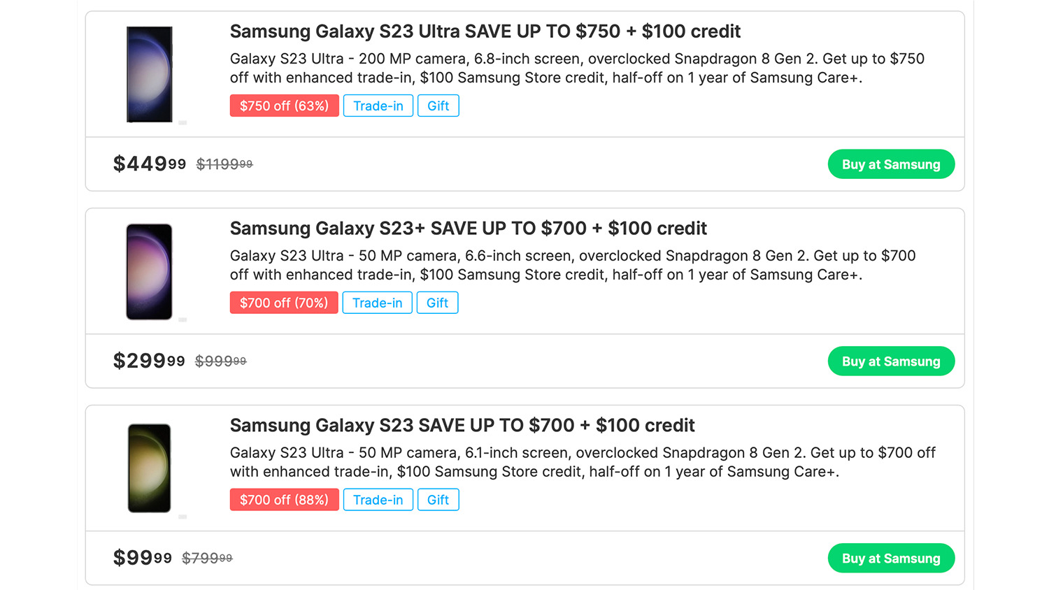 今回の情報によると米SamsungがGalaxy S23シリーズの発売に合わせてプロモーションを強化した結果最大で$850オフで最新のGalaxyに買い換えることができるとしています。